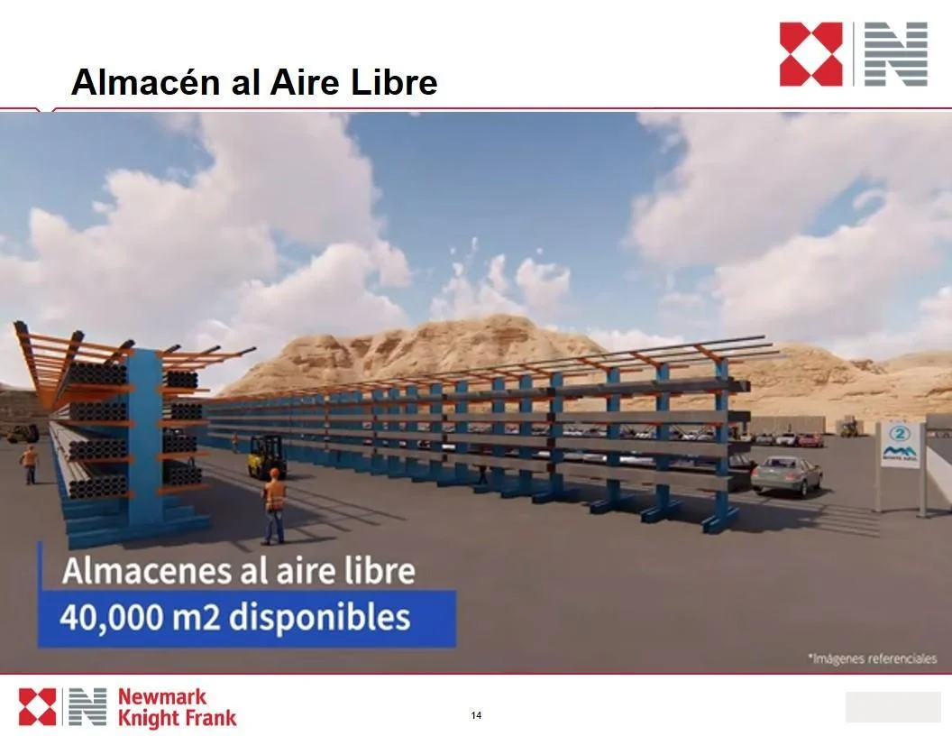 Amplios espacios para almacenamiento de bienes que no requieren almacén techado.