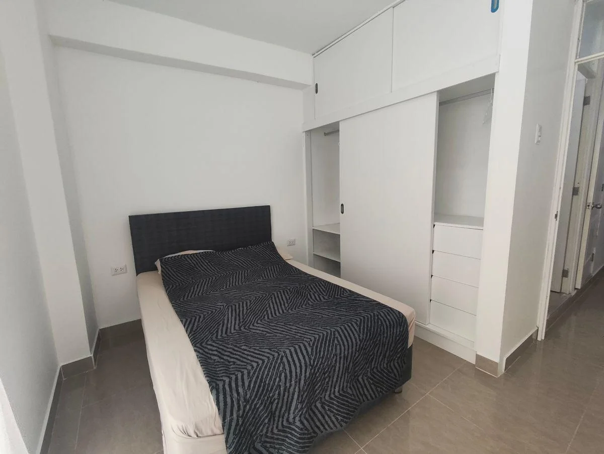 El departamento incluye Smart TV, línea blanca y electrodomésticos como microondas, licuadora, cafetera y waflera. Además, cuenta con menaje completo: ollas, vajilla, cubiertos, vasos, copas y tazas.