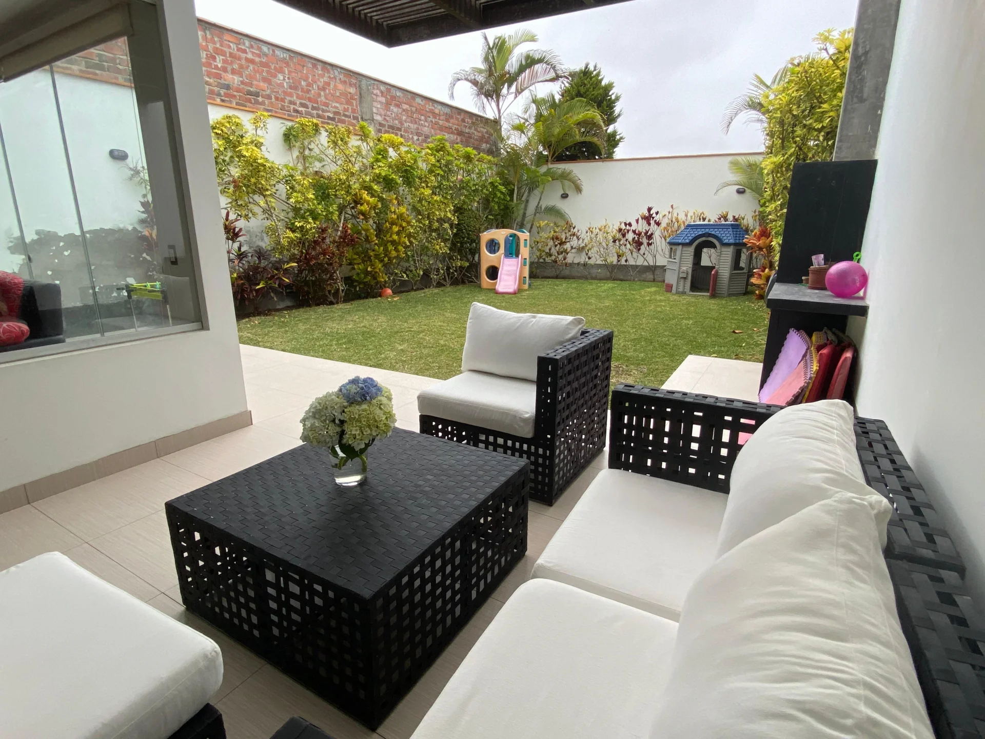 Hermosa casa en excelente estado con una amplia sala, comedor y terraza con vista al jardín. Amplia cocina con muebles altos y bajos, con comedor de diario. Garaje para 2 autos. En el 2° piso hay 4 habitaciones, el dormitorio principal con baño incorporado con jacuzzi y walk-in closet. En el 3° piso se encuentra un depósito, cuarto y baño de servicio y lavandería.
