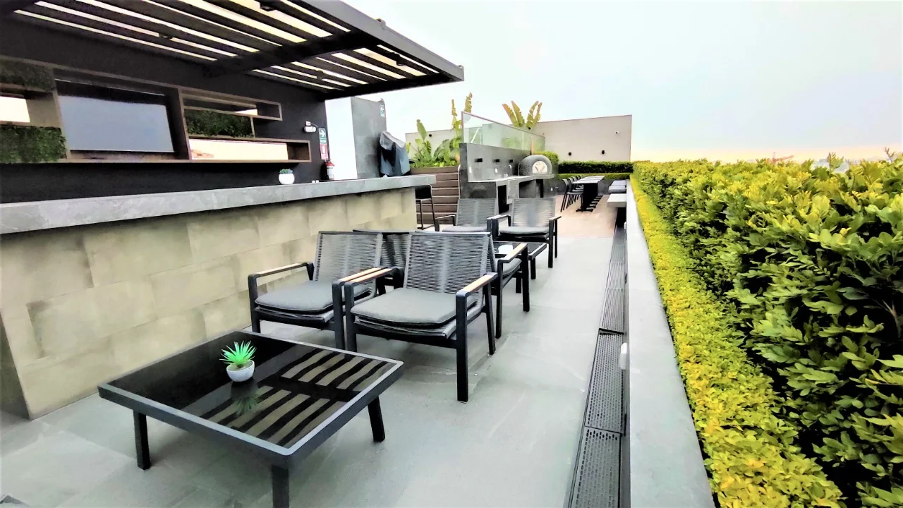 Entre las amenidades que ofrece este apartamento se incluyen balcón, cochera, ascensor, GYM, parrillero, agua caliente central, instalación de TV cable e internet. La propiedad también garantiza la seguridad de sus residentes, con cámaras CCTV, cerca perimetral y portería las 24 horas. Todo esto por un precio de USD 850, convirtiéndolo en una opción inigualable en el mercado de alquiler en Miraflores.
