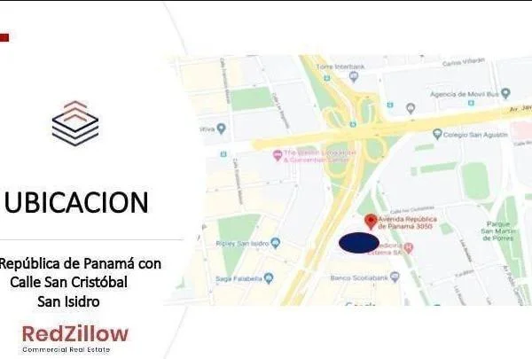 TIPO Local comercial en esquina con zonificacin CM Comercio Metropolitano UBICACIN Y ENTORNO Av Repblica de Panam Calle San Cristbal Paseo de la Repblica Se encuentra en pleno centro empresarial y financiero de San Isidro A minutos de Miraflores minutos del Centro de Lima y minutos del Aeropuerto Internacional Jorge Chvez Fcil acceso desde vas principales como Va Expresa Av Javier Prado Av Repblica de Panam Cuenta con un entorno comercial mixto entre bancos restaurantes grifos centros comerciales colegios clnicas farmacias cafs agencias de viajes cevicheras entre otros CARACTERSTICAS El local cuenta con rea total de m de topografa plana Tiene tres frentes de fcil acceso vas principales y calle secundaria Es posible tambin alquilarse de manera divisible en reas rentables de m o de m esta ltima contiene un rea de oficinas de m CONTACTAR NICOLA DIAZ Igualmente puedes comunicarte para revisar nuestra disponibilidad de locales similares o alternativos que se ajusten a tu necesidad Somos RedZillow especialistas en servicios corporativos abarcando desde la representacin de propietarios y arrendatarios hasta el financiamiento de capital a largo plazo Nuestra meta es ayudarte a fortalecer y enriquecer la inversin en tu negocio ocupndonos de soportar tus decisiones inmobiliarias sobre espacios de oficinas almacenes retail terrenos y plantas industrialesSomos RedZillow especialistas en servicios corporativos abarcando desde la representacin de propietarios y arrendatarios hasta el financiamiento de capital a largo plazo Nuestra meta es ayudarte a fortalecer y enriquecer la inversin en tu negocio ocupndonos de soportar tus decisiones inmobiliarias sobre espacios de oficinas almacenes retail terrenos y plantas industriales