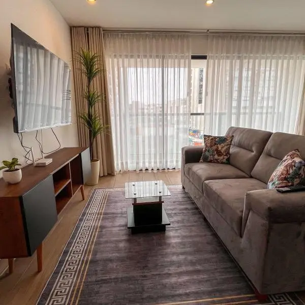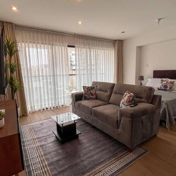 Alquilo indo y moderno departamento loft AMOBLADO de estreno en Calle Albebaran a pocos pasos de la Av Encalada a cuadras del Centro Comercial el Polo y de la Embajada de Estados Unidos PRECIO AT M DISTRIBUCIN Bao para invitados Kitchenette equipado con lindos acabados Lavandera Dormitorio integrado a la sala Balcn Walk in closet Bao completo Piso con vista interna estacionamiento Bao completo Mantenimiento S promedio incluido consumo de agua reas comunes Zona de parrilla coworking bar sala gourmet gimnasio saln kids y piscina CONDICIONES Contrato mnimo de ao meses de garanta y mes de adelanto Sustentos de ingresos Buena calificacin en centrales de riesgo