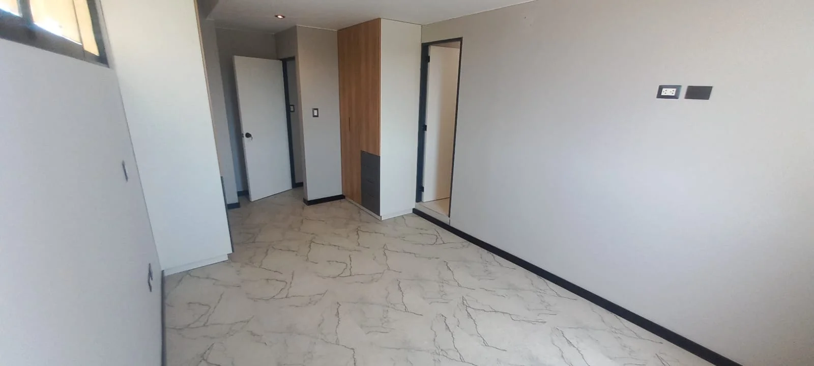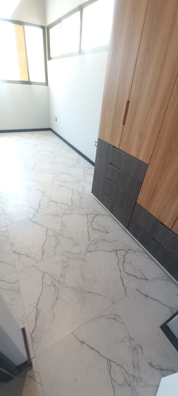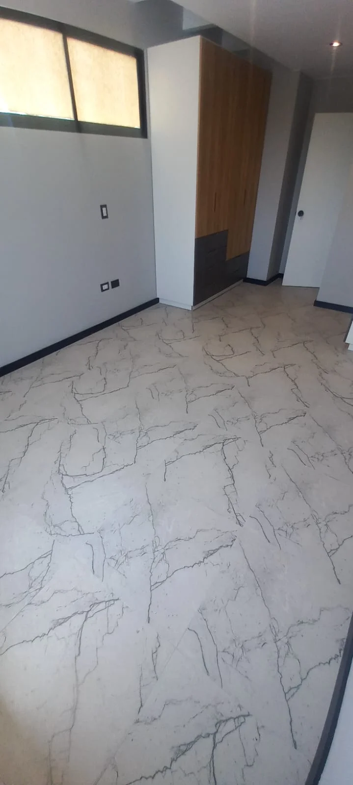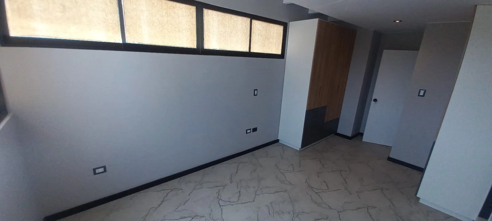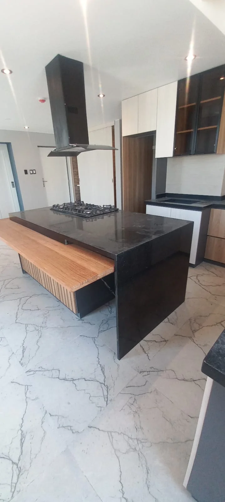 · Cocina abierta tipo americana amoblada con reposteros altos y bajos y equipada con ( Cocina encimera, horno y campana extractora) y mesón de granito