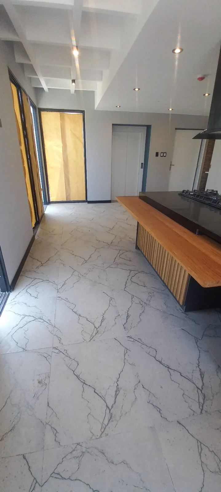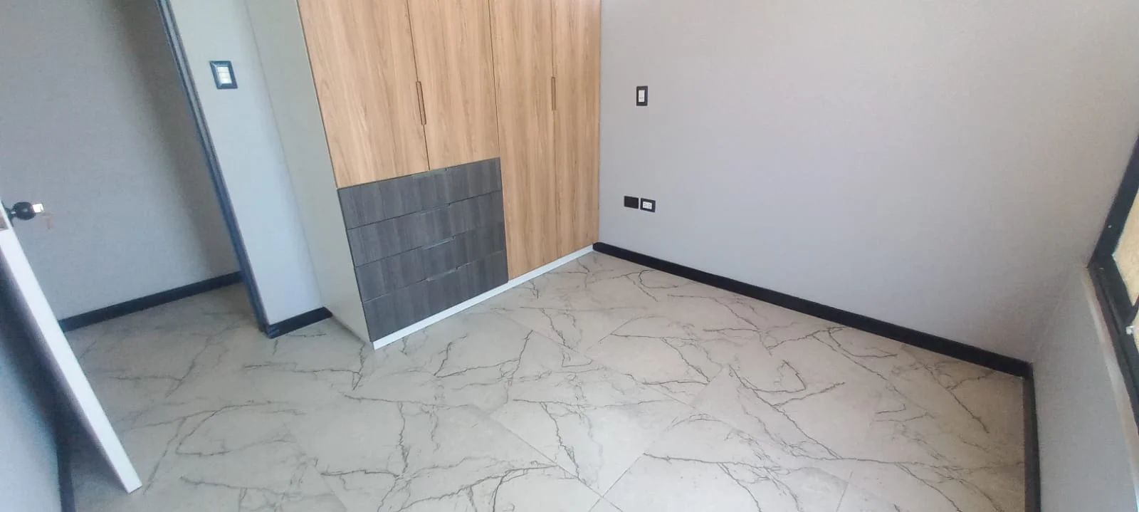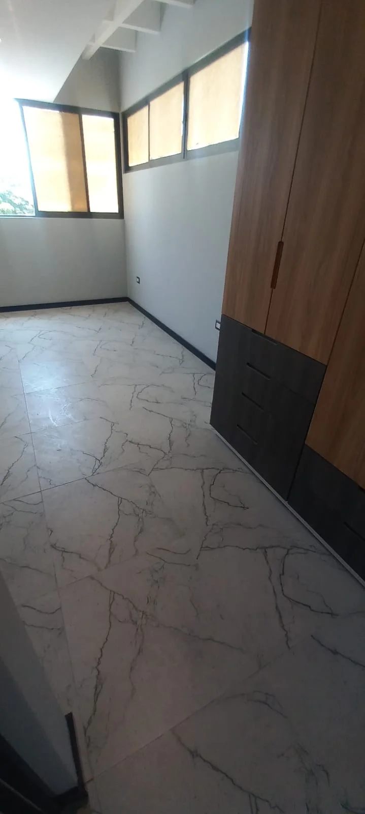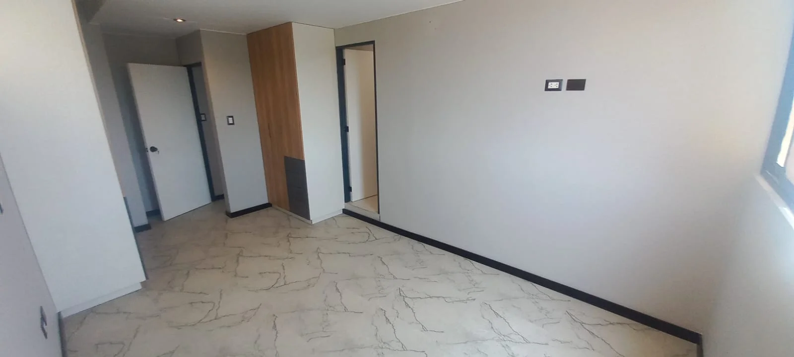 · Cocina abierta tipo americana amoblada con reposteros altos y bajos y equipada con ( Cocina encimera, horno y campana extractora) y mesón de granito