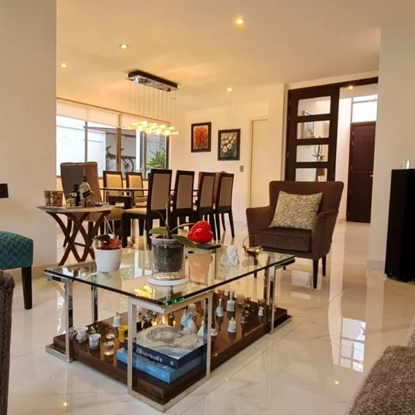 Casa totalmente amoblada y equipada ubicada en el Sol de La Molina da etapa Costo de alquiler mensual SIN AMOBLAR US AMOBLADA US DESCRIPCIN GENERAL rea m Casa ubicada dentro de un condominio cerrado de casas Finos acabados y muebles Cuenta con dos termas a gas de litros cada una Cuenta con una da salida al condominio Seguridad Cuenta con alarma Prosegur cuyo costo es de S mensuales Costo de mantenimiento S mensual Condiciones de alquiler x Dos meses de garanta y de Adelanto er PISO Sala Comedor iluminada Amplio jardn con piscina iluminada y con cada de agua Para los amantes de la buena parrilla cuenta con una parrilla y un cilindro empotrados y para acompaar al parrillero una mesa larga de granito con sillasy una pequea terraza amoblada Lindo bao de visitas Cocina cerrada totalmente equipada y amoblada refrigeradora cocina empotrada de cuatro hornillas a gas horno empotrado a gas campana extractora filtro de agua muebles altos y bajos doble lavado adems cuenta con un comedor de diario Amplio dormitorio principal con bao completo y walking closet Cuenta con muebles empotrados tocador y espejo de cuerpo entero Cuarto Bao de servicio Lavandera con lava seca a gas Cochera para dos autos do PISO dormitorios Uno de ellos cuenta con muebles empotrados bao propio y wc Hay un do bao en esta planta estudios uno cerrado que se puede utilizar como una cuarta habitacin y otro abierto junto al family room Amplio family room con chimenea y estudio Amplio balcn con vistas al jardn CONSULTAS O INTERESADOS Vanessa Mendoza MVCSPN Cel