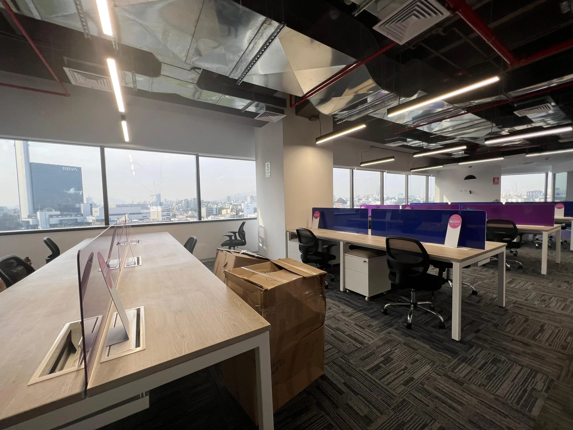 Área abierta de trabajo, 02 directorios, kitchenette, salas de descanso, 05 baños,