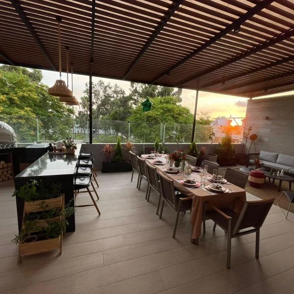 Tercer Piso Amplia y linda terraza techada sol y sombra con zona de parrilla con horno serrano Sala social con bao de visita Dormitorio de visita con bao incorporado Lavandera