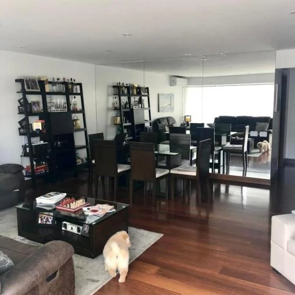 Bonito departamento por el hotel Hilton cerca al malecn restaurantes y comercio calle tranquila edificio de pocos departamentos Sala comedor con terraza a la calle cocina lavanderia cuarto y bao de servicio Star dormitorios baos y Dormitorio principal con walking closet y bao incorporado aire acondicionado tiene lnea blanca cocheras depsito Guardiana