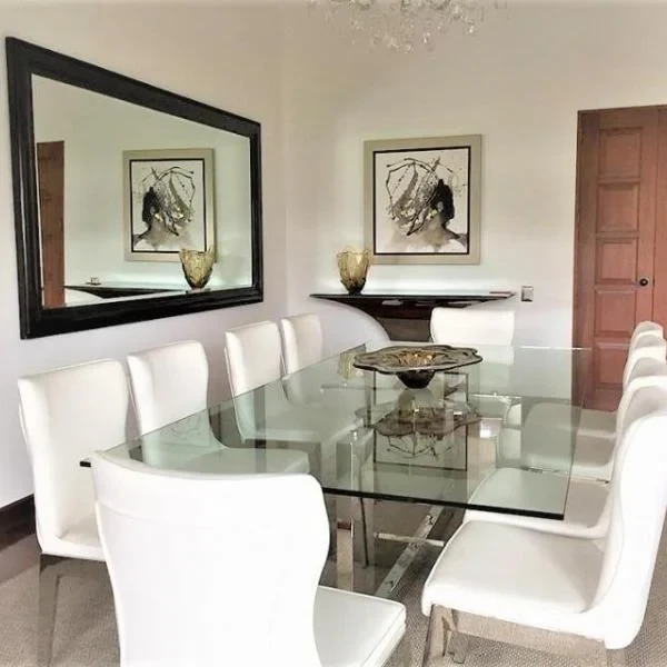 TODO ESTA EN REGLA Lnea Blanca aos de antigedad Vista a la Calle en buen estado Dos Plantas Hall de ingreso Salas Comedor Comedor de diario Cocina Escritorio Sala de estar Dormitorios Baos Baos incorporados Cuartos de servicio Bao de servicio Lavandera Pisos de Madera en rea social Pisos de Madera en rea privada Terraza Jardn Piscina Cocheras tipo Paralelas Abiertas Jardn interior Patio Walkin Closet Gimnasio