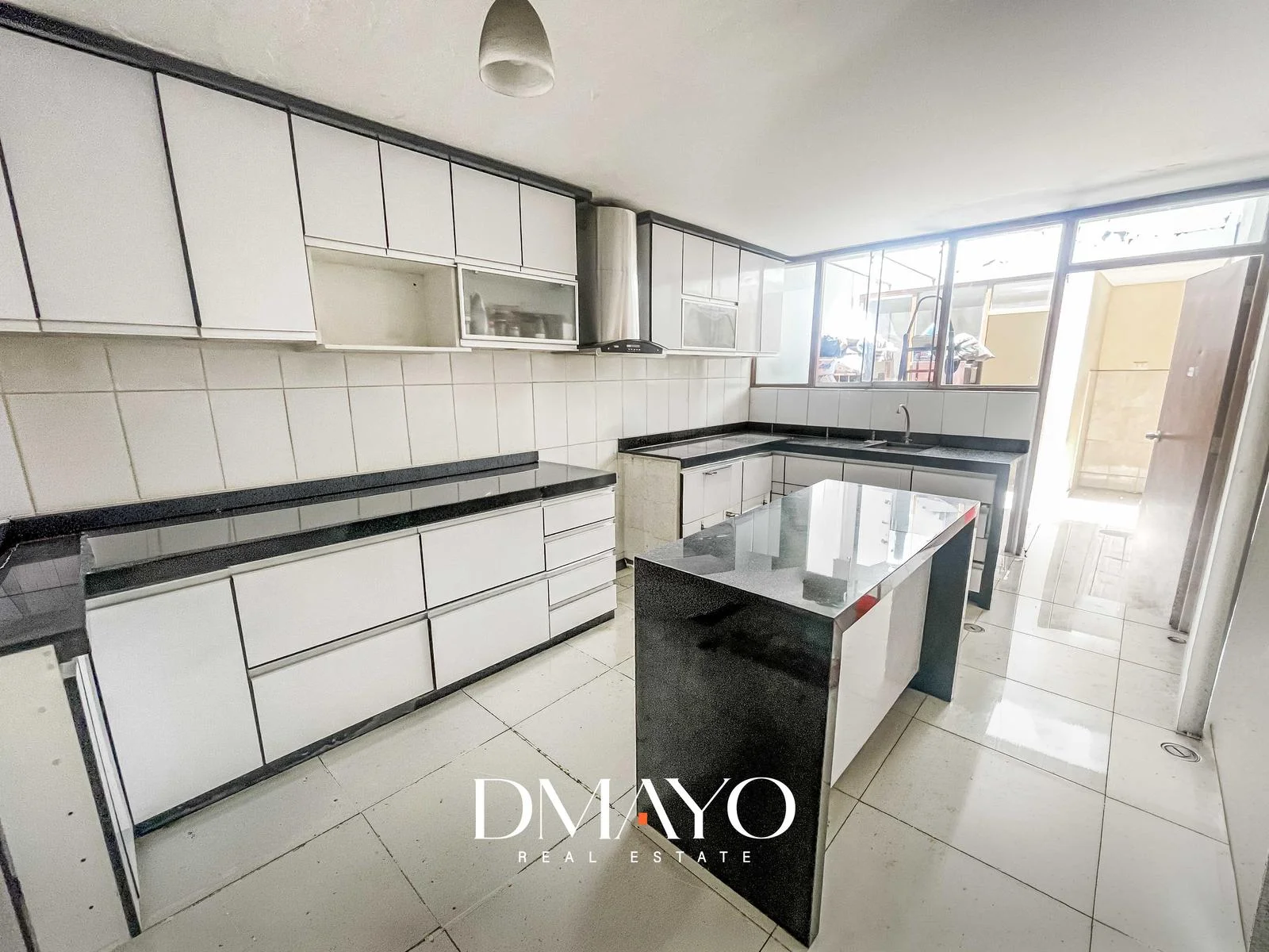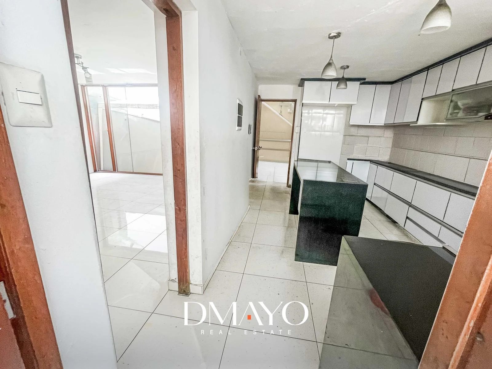 - Cocina cerrada con reposteros altos y bajos, encimera y espacio para refrigerador de 2 cuerpos