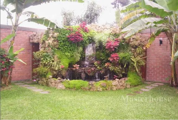 • En zona de jardín piscina con cascada
