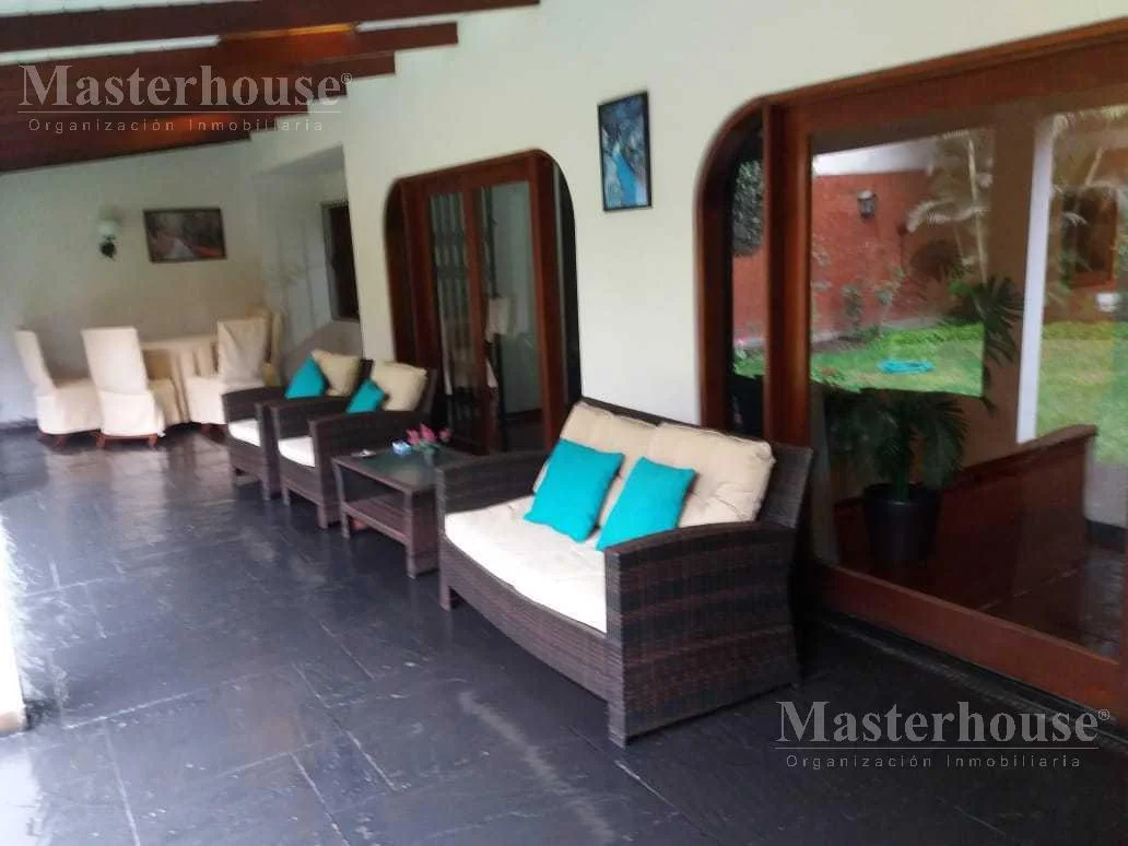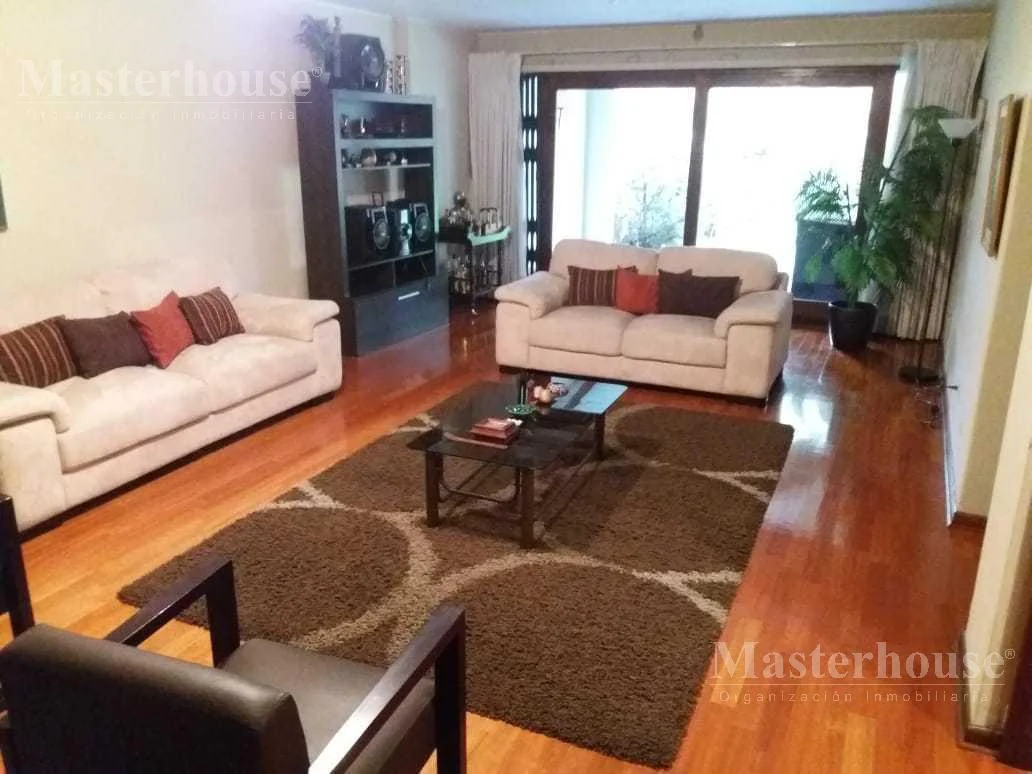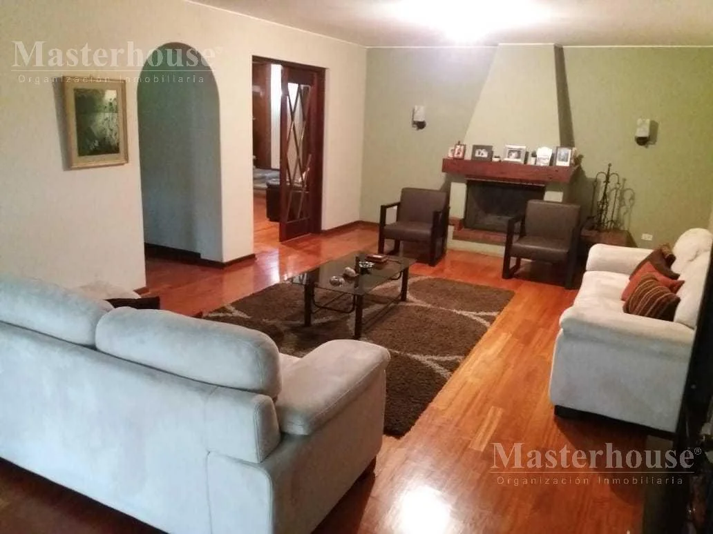 1er piso: Sala con chimenea, comedor, sala de estar, escritorio, cocina amoblada con comedor de diario, 1/2 baño de visitas, terraza, jardín delantero e interior amplios, 2 cocheras paralelas y techadas.