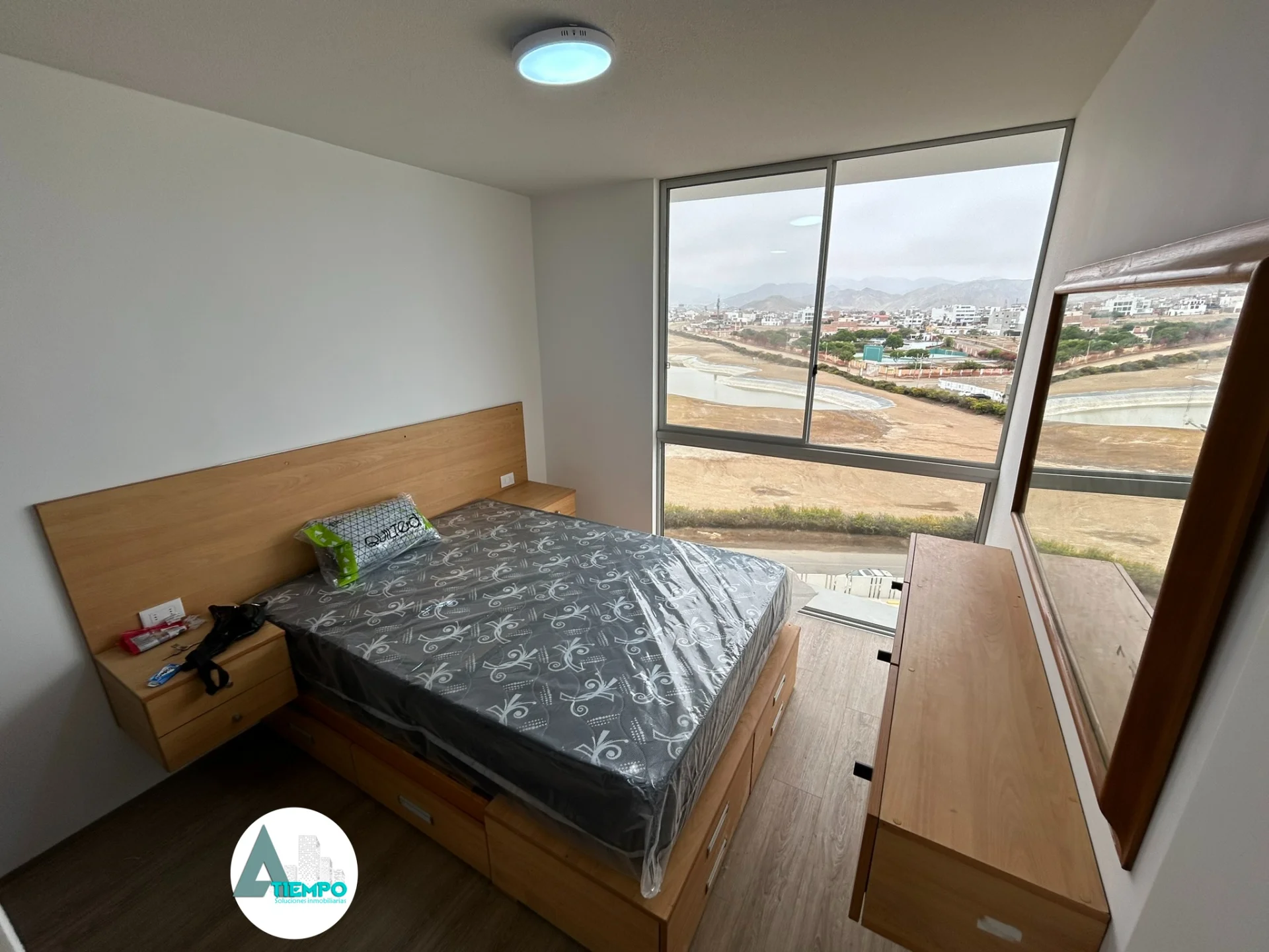 60mt2 // 14mt2 cochera // Piso 8 // 2 dormitorios // Principal con baño // 2 baños // amoblado // cocina americana // Terraza // Todo nuevo // Dentro de condominio con piscina // Estacionamiento // seguridad // Área de parrillas // Zona de reuniones // Mantenimiento $50.00