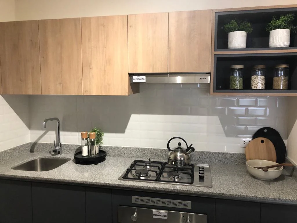 • Cocina semi-abierta con muebles altos y bajos