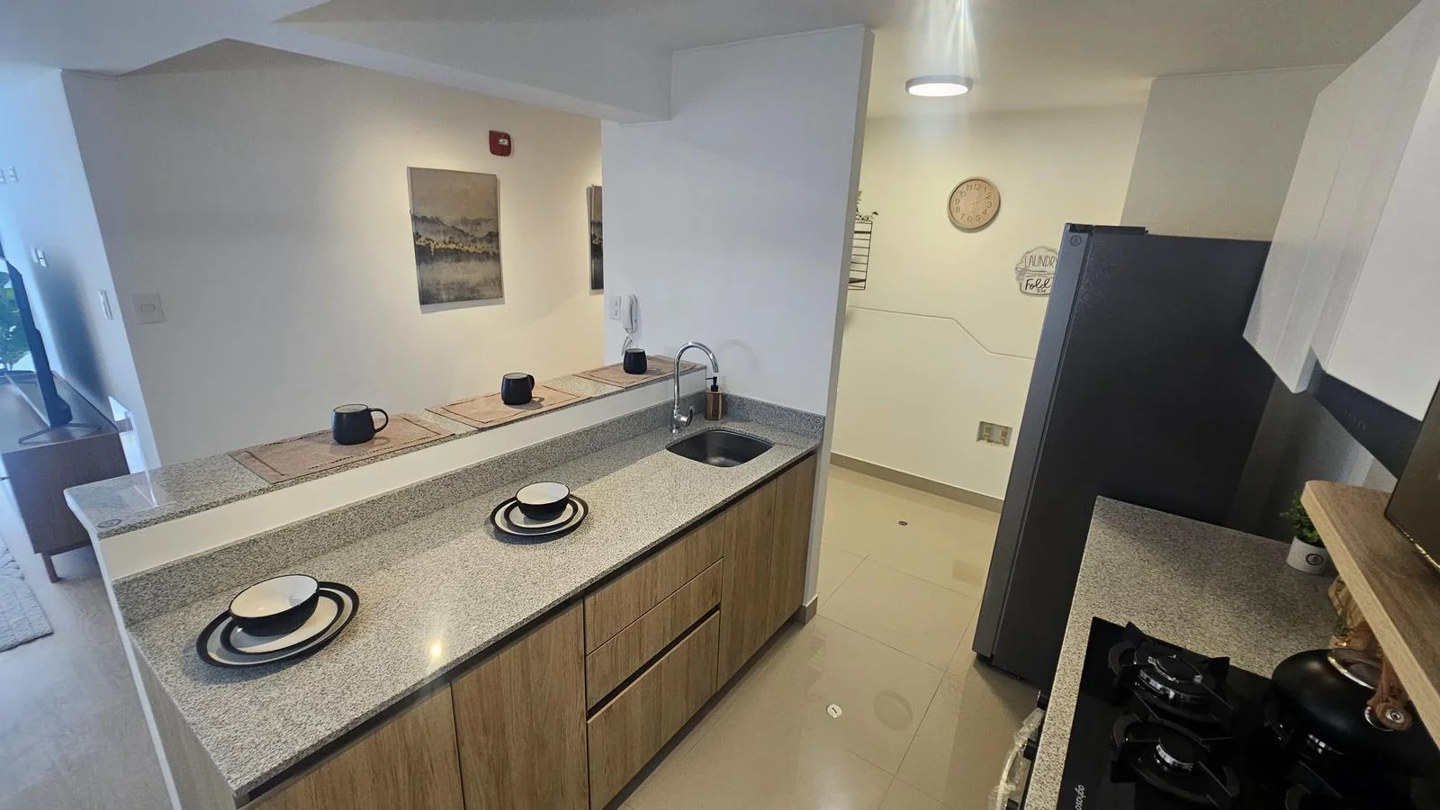 Cocina cerrada con acabados de lujo y tecnología de última generación, diseñada para inspirar a los amantes de la gastronomía.