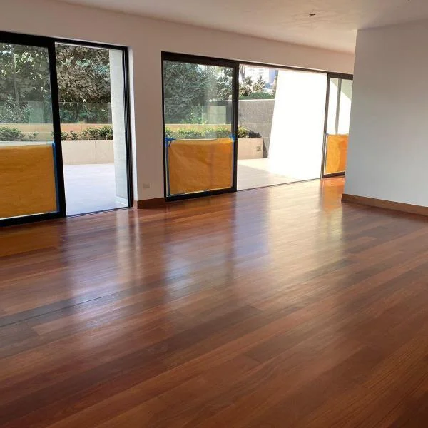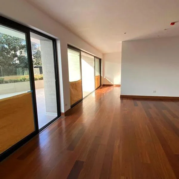 Hall de entrada amplia sala comedor de techos altos de mt y ventanales de pared a pared con salida a amplia terraza con jardineras bao de visitas Cocina de buen tamao con comedor de diario tableros de granito y reposteros acabados en poliuretano