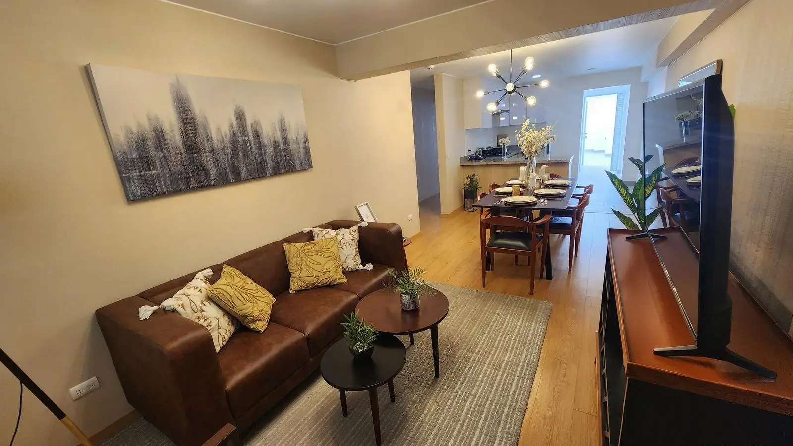 • Acogedora sala-comedor, diseñada para crear momentos inolvidables en un ambiente cálido y espacioso.
