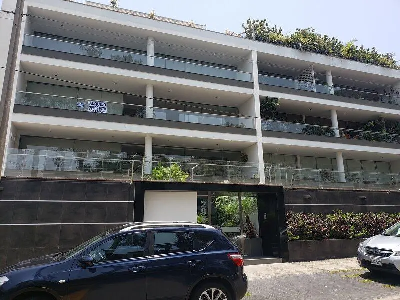 NO MASCOTAS NO NIÑOS 4 pisos, sin muebles, 5 años de antiguedad, vista a la calle, impecable, piso 3, 2 departamentos por piso, 6 departamentos en total, guardianía, flat. Hall de ingreso, sala, comedor, comedor de diario, cocina, sala de estar, 3 dormitorios, 4.0 baños, 3 baños incorporados, 1 cuarto de servicio, 2 baños de servicio, lavandería, 1 depósito, pisos de madera en área social, pisos de madera en área privada. Terraza, 2 cocheras tipo paralelas en sotano, ascensor directo. No mascotas, disponible desde el ****.