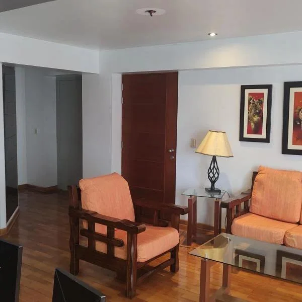 Se Alquila amplio Departamento en Miraflores con una ubicacin privilegiada a dos cuadra de la Av Alfredo Benavides y a una cuadra de la Av de Julio Para ms informacin llamar a Adolfo Brito al CARACTERSTICAS GENERALES rea de Ocupada m Niveles construidos pisos Nivel de departamento piso N Depto por piso Deptos N de Dormitorios N cochera N de Baos N de ascensor ZONA Este departamento en Miraflores est estratgicamente ubicado en Jr San Martin lo que lo hace atractivo por tener la proximidad a diversos malls y centros comerciales cadenas de restaurantes entidades bancarias y recreacional y centros de salud EDIFICIO Este departamento en Miraflores se encuentra en un sexto piso con una antigedad de trece aos el edificio tiene pisos construidos contando con cuatro departamentos por piso adicionalmente el edificio cuenta con seguridad las horas del da con sistema de circuito cerrado intercomunicador con mando de control para el portn que da acceso a la cochera y un ascensor LA COCINA La cocina posee muebles altos y bajos y conecta con el rea de lavandera adicionalmente cuenta con un dormitorio de servicio con bao incorporado DORMITORIOS Este departamento en Miraflores cuenta con tres dormitorios todos con closet incluidos el dormitorio principal cuenta con bao incluido y vista a exterior RESTO DEL DEPARTAMENTO El acceso al departamento cuenta con ascensor directo al departamento El acceso al edificio cuenta con un intercomunicador que permite dar acceso a visitantes hacia el hall de espera adems de poseer un sistema de circuito cerrado y mando de control remoto para el acceso a la cochera la cochera est situada en el stano ESTE DEPARTAMENTO ES ESPECIAL POR Por sus cualidades en cuanto al metraje precio y estado de conservacin que es bueno una excelente e inmejorable ubicacin en el pleno corazn de Miraflores muy cercano a malls centros comerciales bares excelentes restaurantes entidades bancarias colegios Universidades y centros de salud y esparcimientos social Por favor llmenos para una visita a este departamento en Miraflores Estaremos gustosos de atenderlo y as comprobar todas las ventajas que le ofrece este departamento