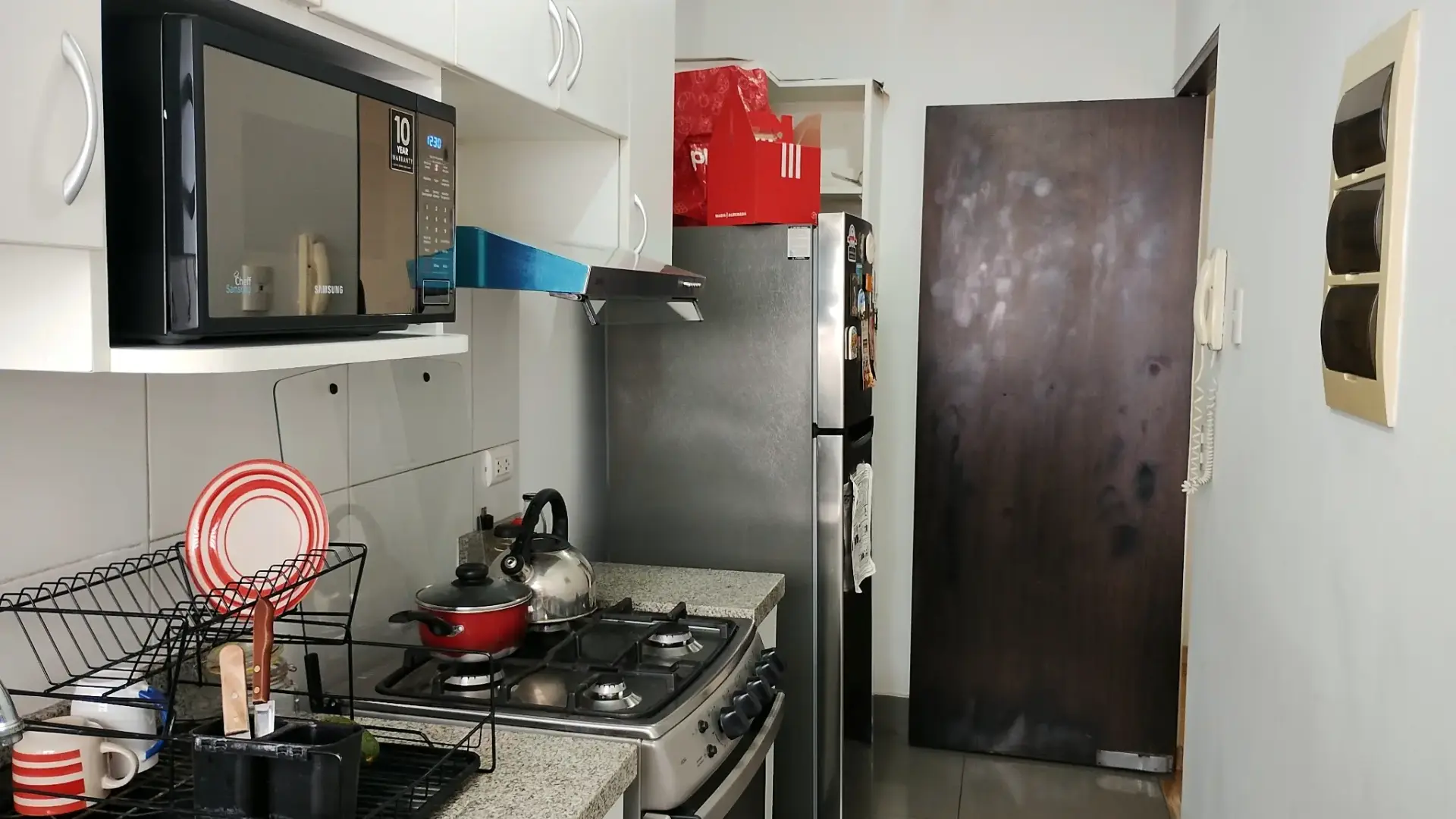Cocina independiente equipada con reposteros altos y bajos + tablero de granito.