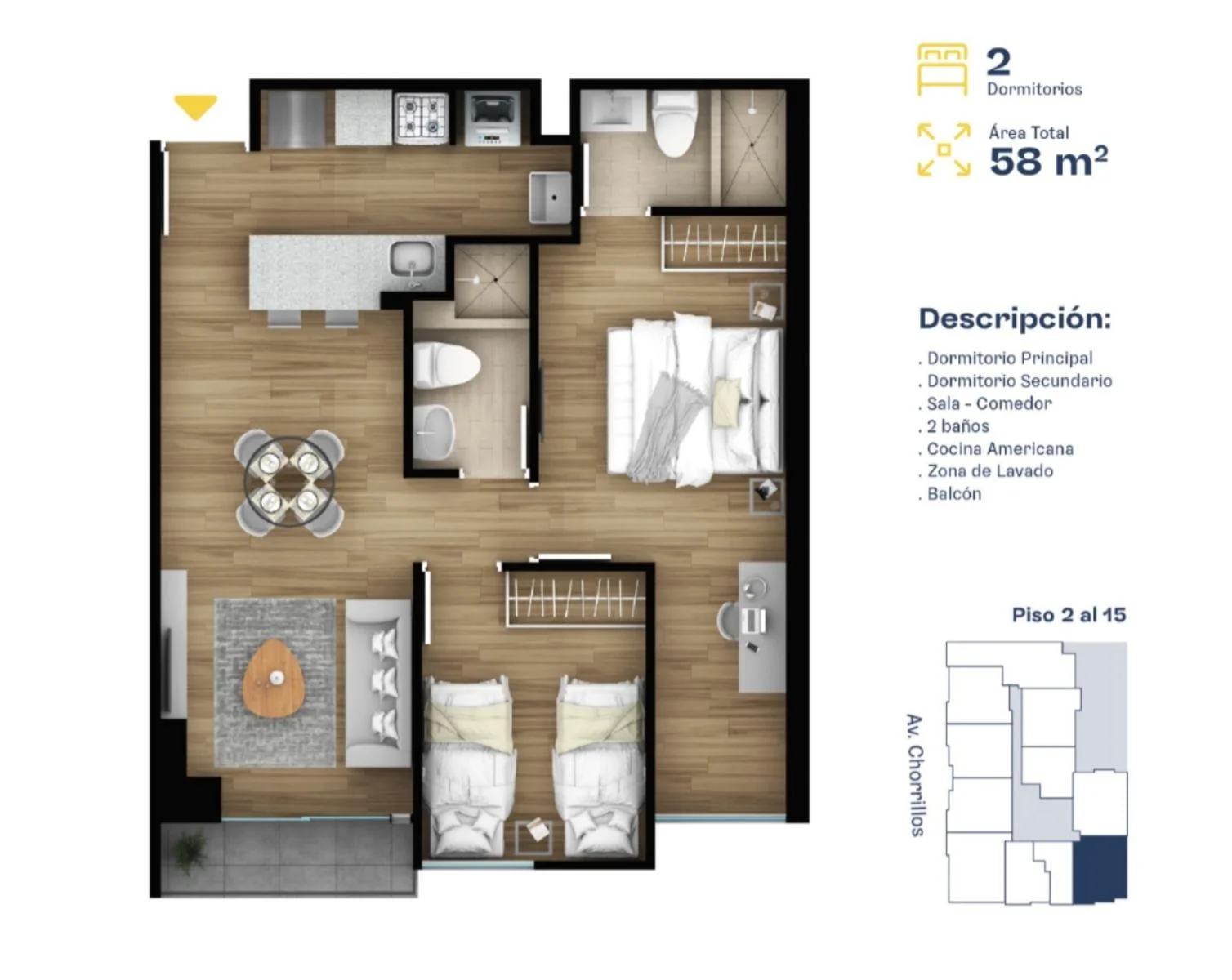 Departamento de 2 dormitorio en Chorrillos, cerca a la Escuela de Policía, Real Plaza y Av. el Sol