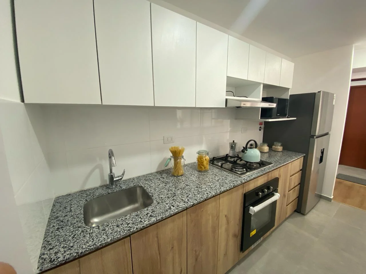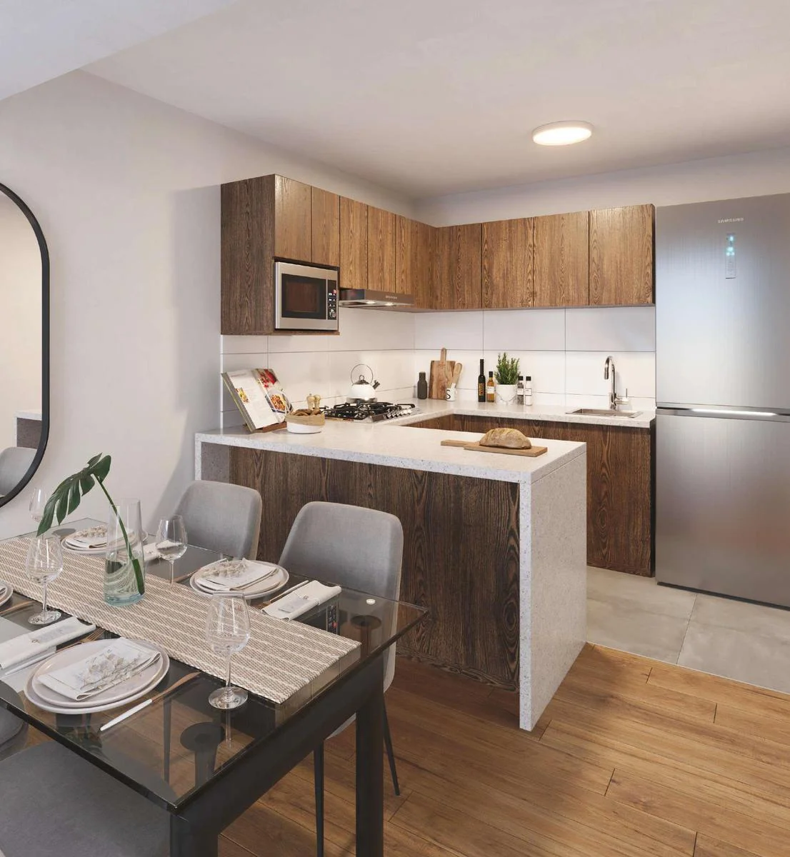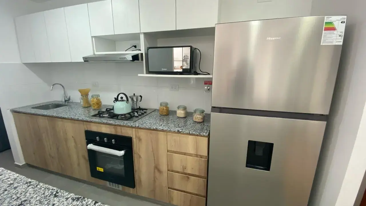 Cocina abierta con acabados de lujo y tecnología de última generación, diseñada para inspirar a los amantes de la gastronomía.
