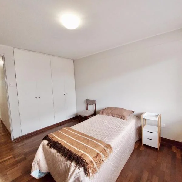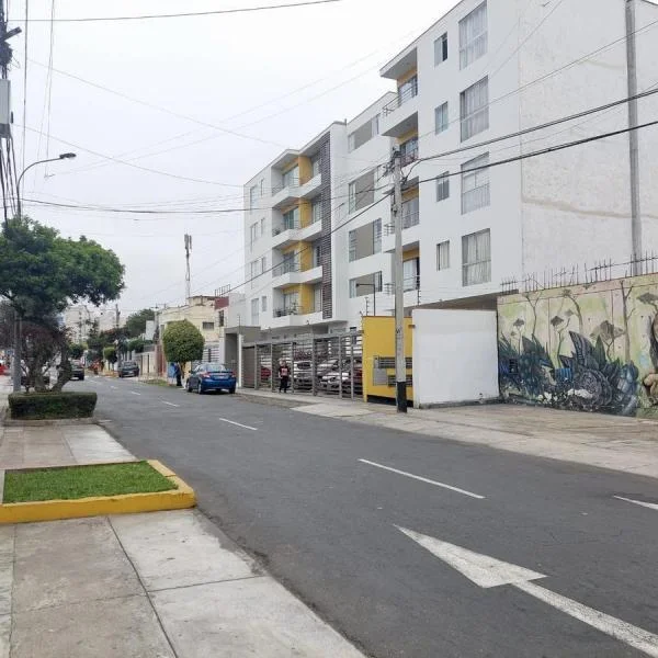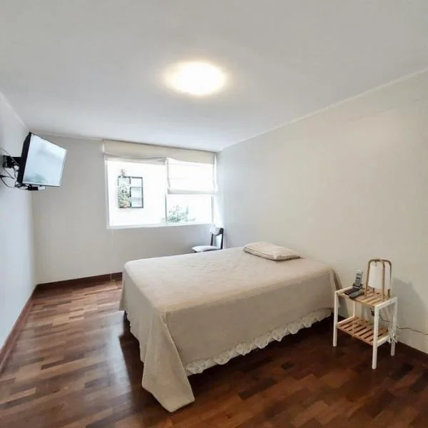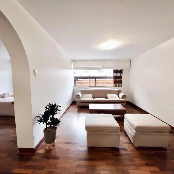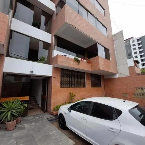 Lindo departamento en primer piso situado en una zona tranquila del corazón de Miraflores a solo dos cuadras del Malecón Cisneros, de la clínica Good Hope y de Wong Balta. El departamento tiene piso de parquet en una amplia sala-comedor, cocina independiente con línea blanca cocina a gas, cuarto y baño de servicios remodelados, lavandería con lavadora y secadora y una terraza interior. Terma eléctrica de 50l.Tiene dos dormitorios amplios, que comparten un baño completo, el primer dormitorio tiene vista hacia la calle, con clóset y cama de una plaza, el segundo dormitorio tiene vista a la terraza interior, cama de dos plazas y televisor.El departamento se alquila amoblado o sin muebles