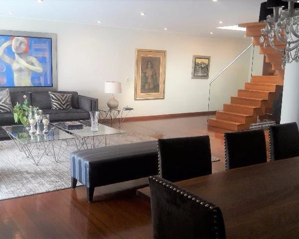 ALQUILER DUPLEX PENTHOUSE EXCLUSIVO EQUIPADO Y AMOBLADO CON PRECIOSA TERRAZA CON PLANTAS Espectacular Duplex penthouse en una bonita Zona residencial edificios bajos y modernos pocos vecinos zona estratgicamente ubicada cerca a la UL CC Jockey Plaza Hipdromo etcEl dplex est en un er Y rto Piso cada nivel muy amplio con mt cada uno y la siguiente distribuciner Nivel Recibo amplsima sala comedor acogedor bao de visita Cocina completa con Despensa muebles altos y bajos mesones en granito negro comedor de diario y lnea elecrodomsticos empotrada horno campana extractora y encimera refrigeradora sala de estar con sillones y mueble TV dormitorios muy amplios con baos incorporados El principal tambin cuenta con wcrto Nivel Bellsima sala de estar con vista integral a la terraza llena de jardineras y frondosas Plantas estudio que podra ser un cuarto dormitorio bao completo con ducha rea completa de Lavandera cuarto y bao de servicio y tendalEspectacular terraza con plantas un jardn vertical y plantas area de parrilla con mesada en granito y sol y sombra aire acondicionado en los ambientesSe entrega amoblado y equipado con muebles de salacomedor lnea electrodomsticos completa en cocina y lavandera sillones y consolas en las salas de estar y dormitorios equipados con muebles y camas con somieres una King size y dos somieres plazas y media Rollers bellas luminarias cuadros Excelentes acabados Suelos de ambos pisos en listones de madera tableros cocina en granito y de los baos en quarzo buenos porcelanatos y enchapes de pared todos los baos con mamparas imponente escalera flotante con escalones en madera barandas en vidrio Adems cocheras paralelas techadas reas verdes al ingreso del edificio bancas y terraza en rea comn vigilancia con portera hrs todo el ao Ascensor Tercer PisoArriendo anual solo a familias con excelentes referencias y record financiero NO SE ACEPTAN MASCOTAS DE TAMAO MEDIO O GRANDE