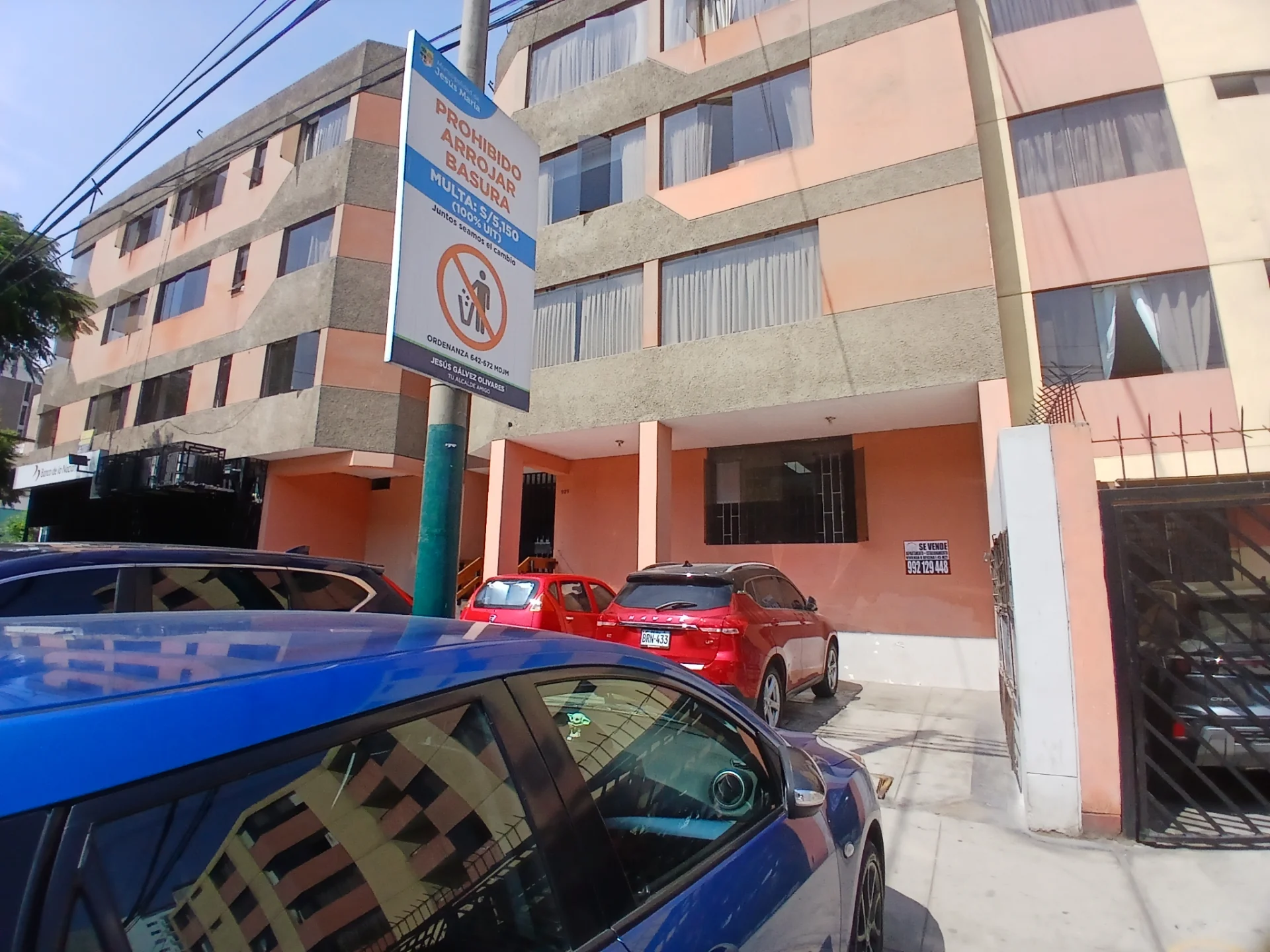 Además, posee un estacionamiento en el frontis del edificio con un area de 13.75 mts² (2.5 x 5.5).