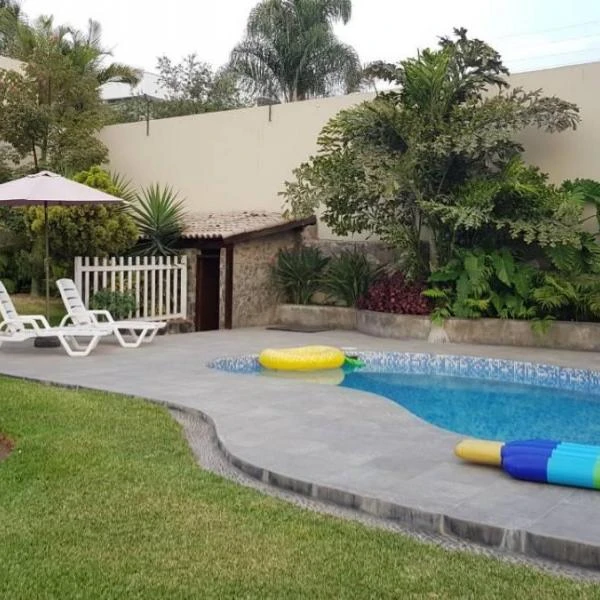 Amplios jardines terrazas y piscina con bao y cambiador