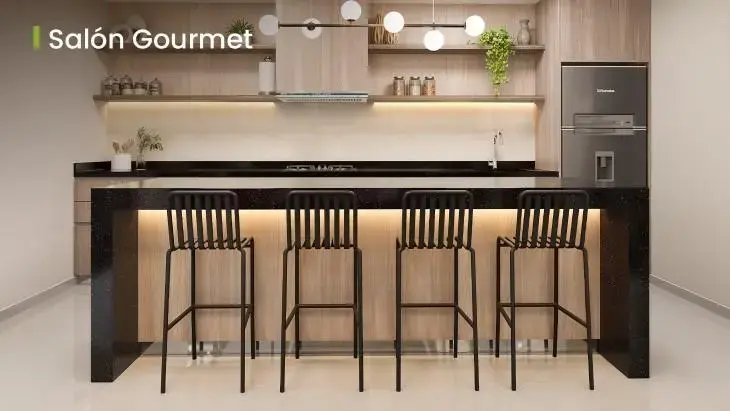 • Cocina estilo americana ideal para quienes disfrutan del arte de la cocina.