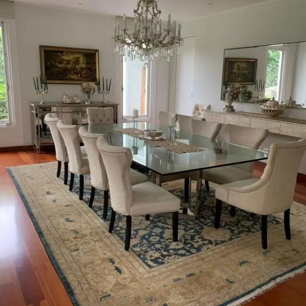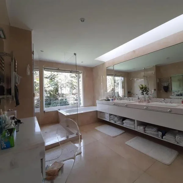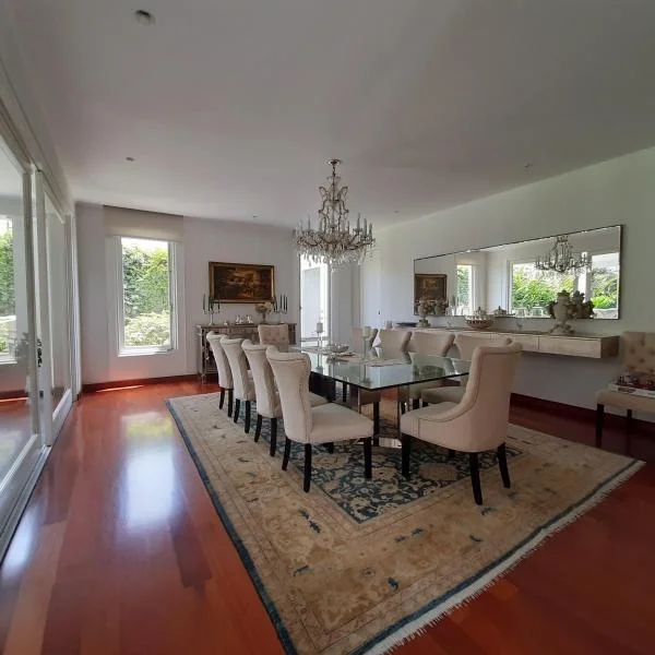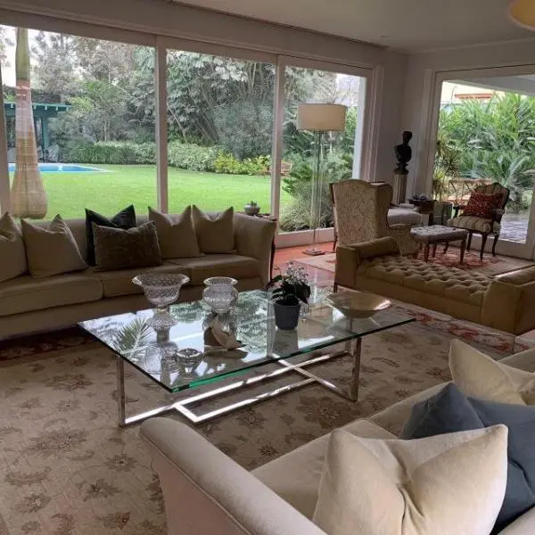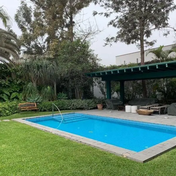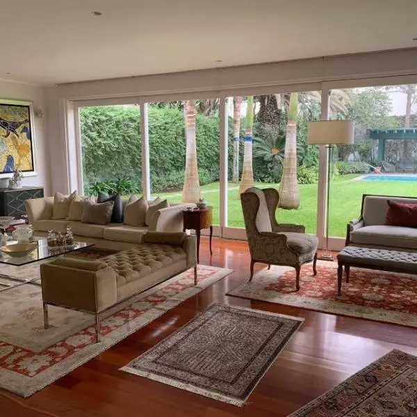 Primer Piso: Imponente ingreso con jardines y bonita pileta, hall de ingreso con techos a doble altura y pisos de mármol Italiano. Amplia sala comedor por separado colindante a una gran terraza y salida a amplio jardín con piscina. Al fondo del jardín esta la zona de BBQ techada con muebles de granito. Una primera sala de estar conectada a un escritorio con muebles empotrados. Baño de Visitas, Amplia cocina con muebles altos y bajos en poliuretano, tableros de cuarzo y granito, equipada con artefactos GE de la linea Profile, isla, despensa, tiene comedor de diario separado. Area de servicio: dos dormitorios, y baño. Segundo Piso: Dos salitas de distribución hacia los dormitorios, Gran sala de estar familiar con muebles empotrados, 4 dormitorios con walk in closet y baño incorporado con vista áreas verdes. Amplio Dormitorio principal con gran walk in closet, baño con jacuzzi y ducha española, dos ovalines, pisos y paredes de mármol Aire acondicionado central. En este piso está la lavandería, muy amplia con patio de tendal. Hermosas áreas verdes, vistas desde prácticamente todas las áreas de la casa, con techos altos, jardín con lindopaisajismo. Todos los pisos son de madera de tablón ancho en pumaquiro. Estacionamiento para cinco carros paralelos techados. Calle tranquila y cerca a accesos principales Av. Manuel Prado Ugarteche y Av. La Molina. Vale la pena visitar esta hermosa residencia, precio rebajado y conversable CONTACTO MERCEDES SOLIDORO 9.9.8.3.0.2.9.8.9 / .9.9.9.8.5.2.2.2.2.