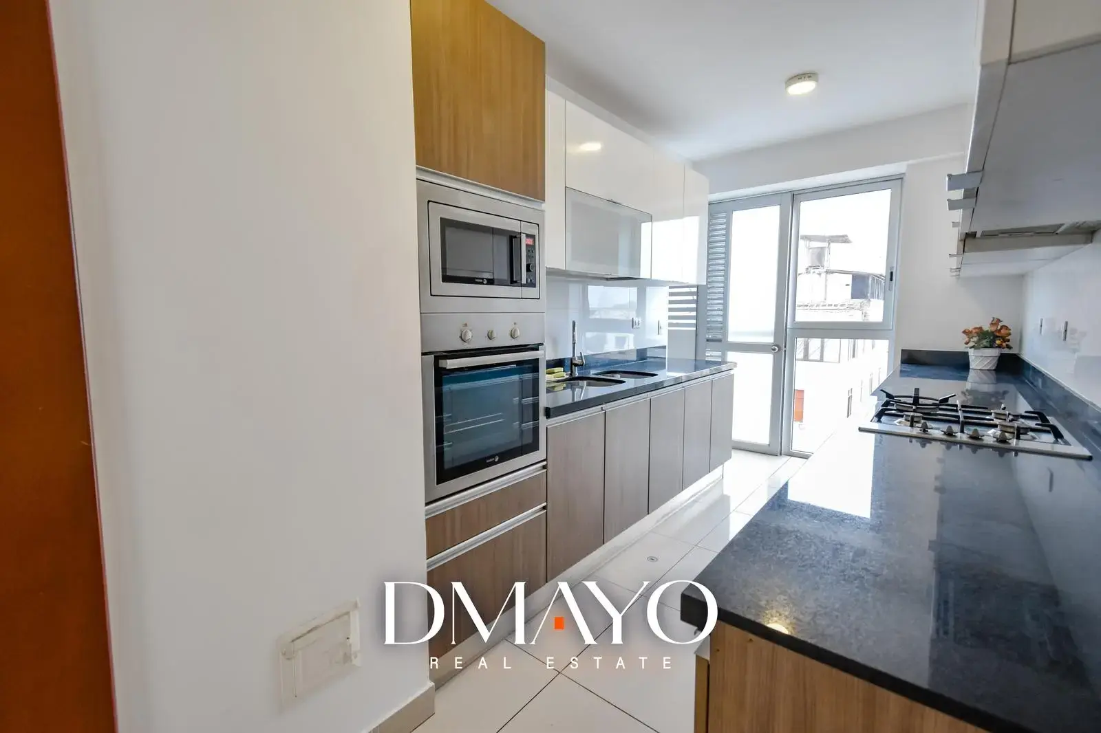 • Cocina independiente equipada con encimera, horno, campana extractora y microondas empotrado.