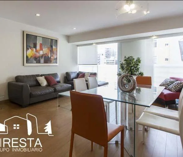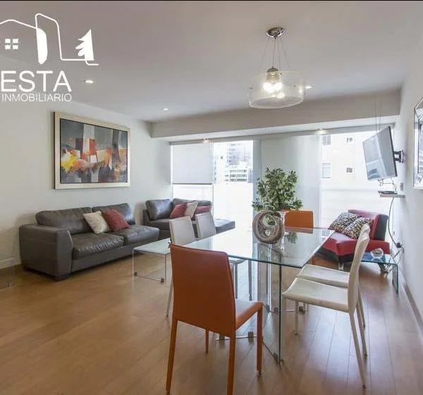 Hermoso departamento de 130 m2. Moderno y muy funcional, con buena iluminación. Acabados muy buenos. Idealmente ubicado, cerca al Hotel Hilton y Hotel Marriott, así como el centro comercial “Larcomar”, en el corazón de Miraflores. Zona muy agradable y segura. – 2 dormitorios (ambos con baño incorporado). – baño de visita. – amplia sala comedor moderno, – zona de escritorio. – amplia cocina funcional, con reposteros altos y bajos. – línea blanca y menaje completo. – comedor de diario. – área de lavandería con lavadora y secadora de ropa. – 2 cocheras. Cuota de mantenimiento del edificio: 525.00 Nuevos Soles mensuales. Edificio muy seguro, vigilado las 24 horas del día.