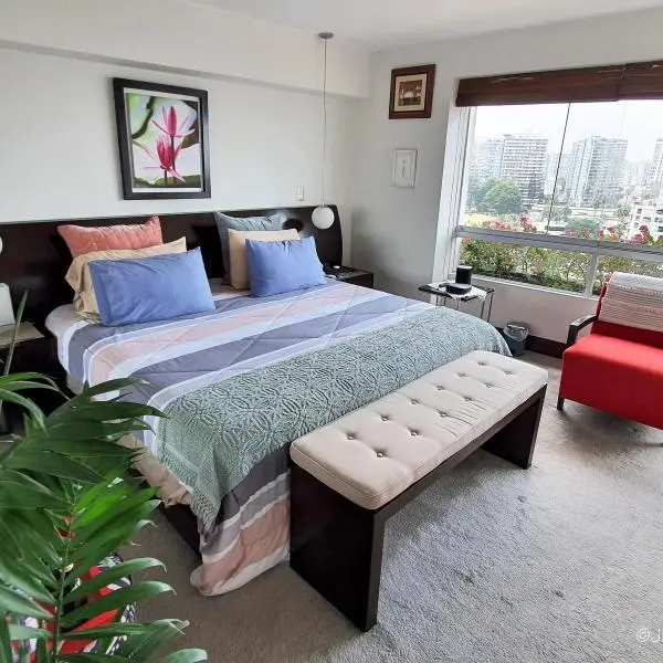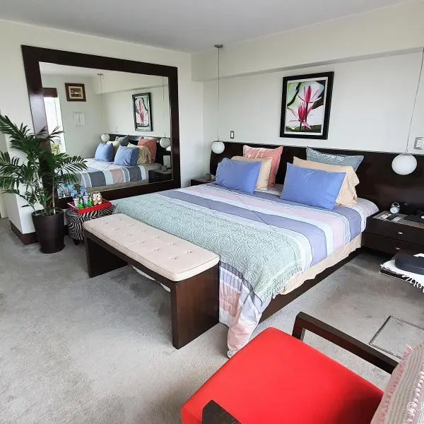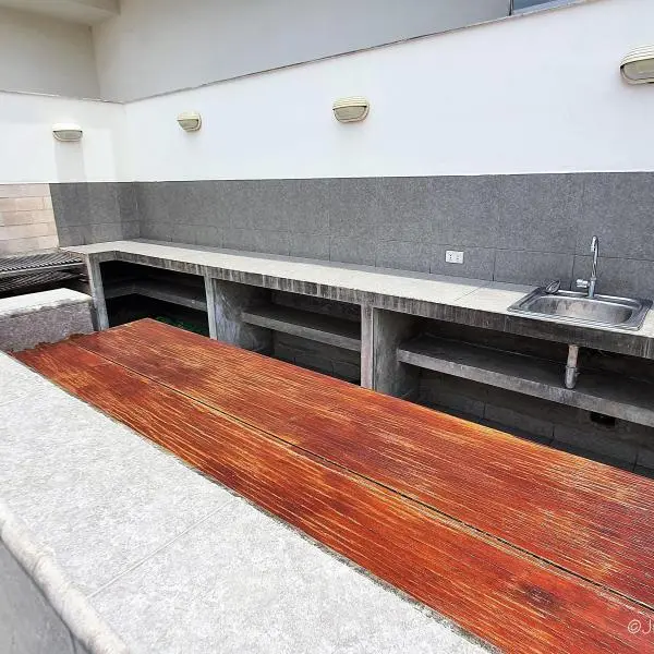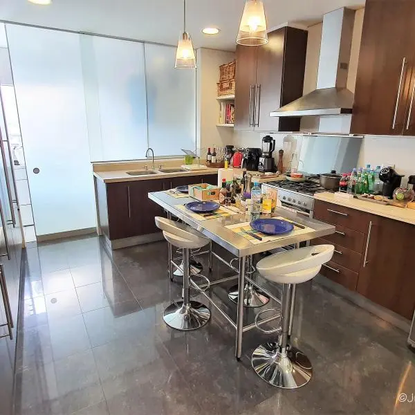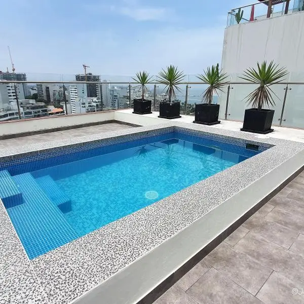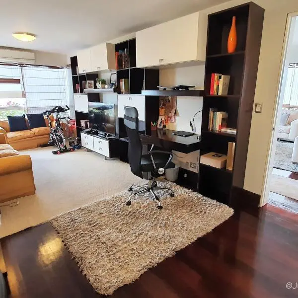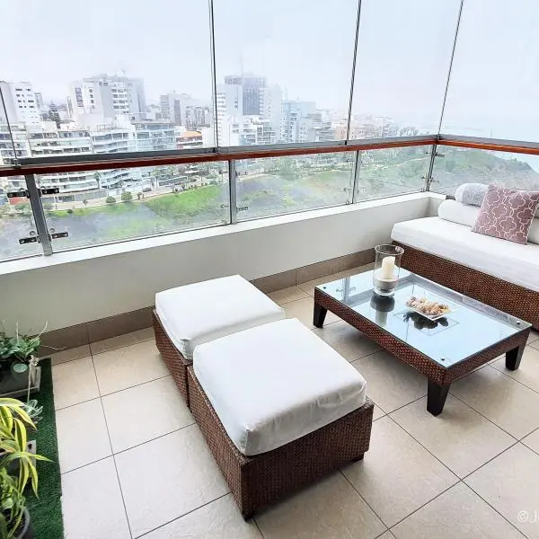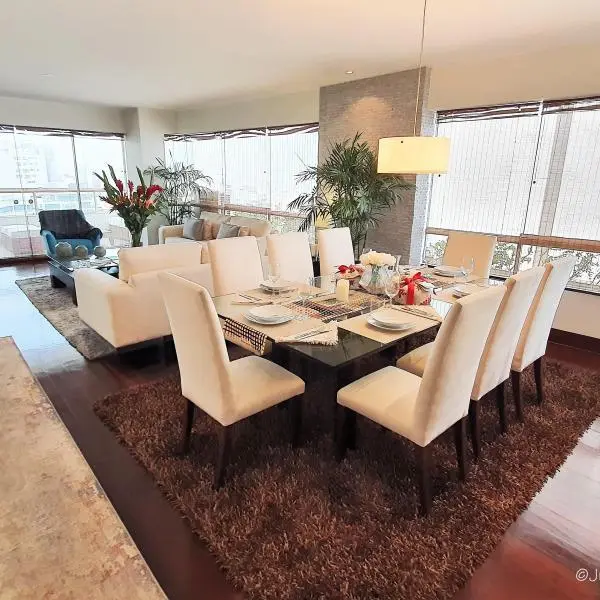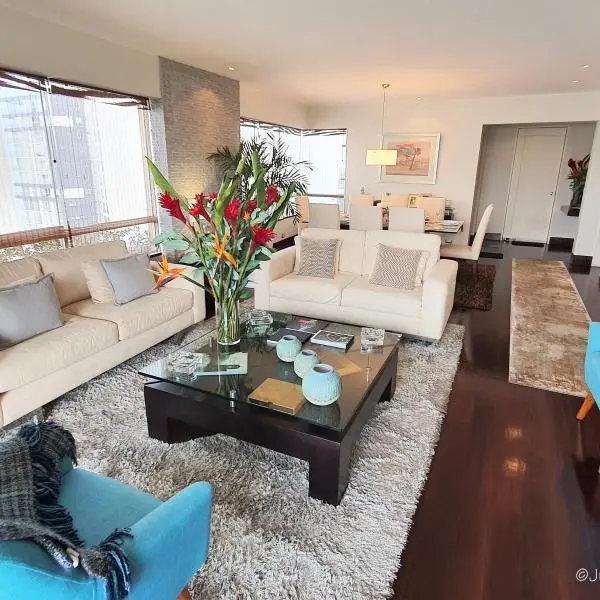 El dpto. cuenta con amplia terraza, área de servicio completa, depósito y 2 cocheras techadas. Amoblado y equipado. En caso de venta se podria reducir la sala de estar para tener un dormitorio mas. HERMOSAS ÁREAS COMUNES: Piscina, jacuzzi, área de parrilla con mesas y poltronas, zona de juegos de niños y salas de espera.