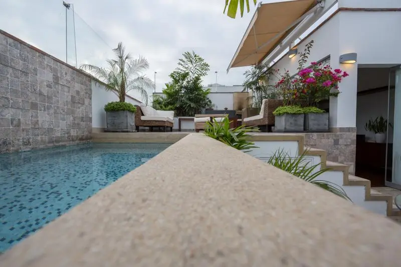 Segundo piso: En el segundo nivel se encuentra una sala de estar, el espacio perfecto para descansar o disfrutar de una película en familia. El baño completo adicional en este piso proporciona aún más comodidad. Lo que realmente distingue a este penthouse es su terraza muy amplia, que cuenta con una piscina privada y una zona de BBQ para reuniones y eventos al aire libre. También se encuentra un escritorio, ideal para quienes necesitan un espacio de trabajo en casa, y un dormitorio adicional con closet completo y baño incorporado, ofreciendo privacidad y confort para los huéspedes o familiares. Además, la propiedad incluye una lavandería, cuarto y baño de servicio, asegurando una funcionalidad completa.