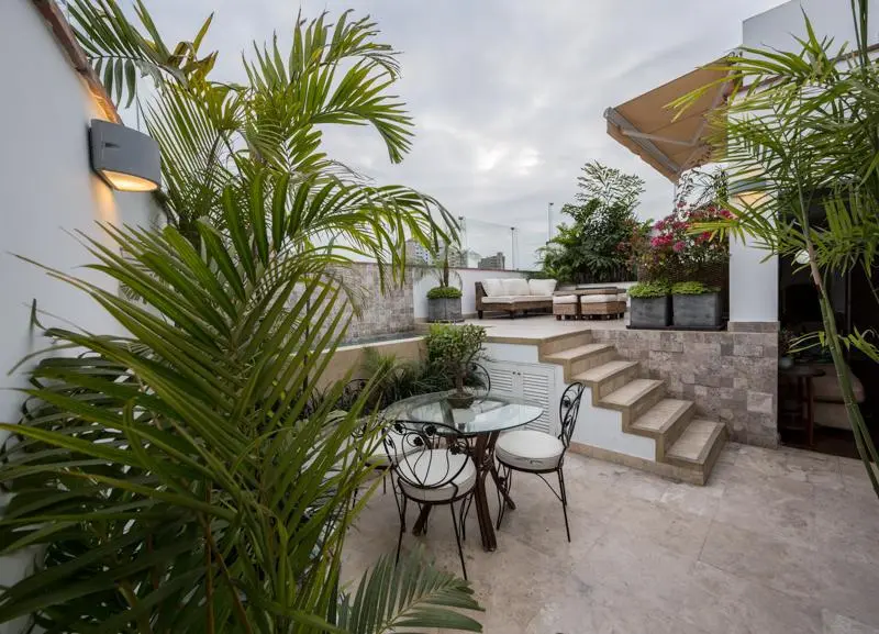 Segundo piso: En el segundo nivel se encuentra una sala de estar, el espacio perfecto para descansar o disfrutar de una película en familia. El baño completo adicional en este piso proporciona aún más comodidad. Lo que realmente distingue a este penthouse es su terraza muy amplia, que cuenta con una piscina privada y una zona de BBQ para reuniones y eventos al aire libre. También se encuentra un escritorio, ideal para quienes necesitan un espacio de trabajo en casa, y un dormitorio adicional con closet completo y baño incorporado, ofreciendo privacidad y confort para los huéspedes o familiares. Además, la propiedad incluye una lavandería, cuarto y baño de servicio, asegurando una funcionalidad completa.