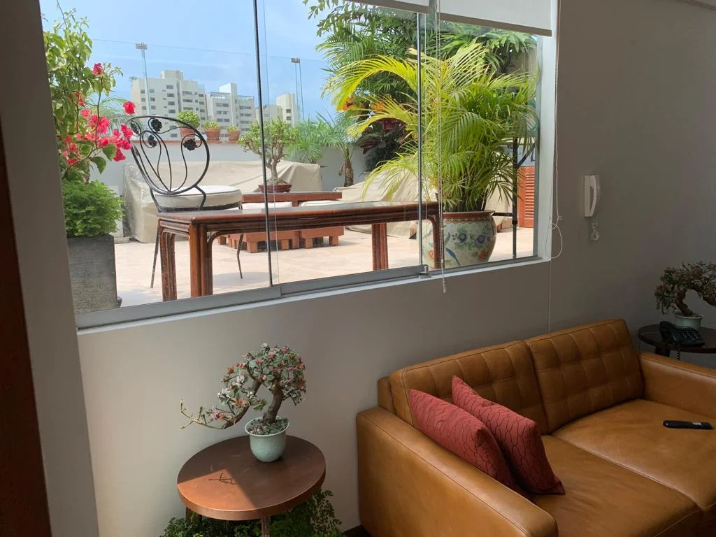 Edificio de Primera Calidad El edificio en el que se encuentra este espectacular penthouse ofrece una serie de beneficios que lo convierten en una opción exclusiva y segura. Cuenta con una moderna guardianía las 24 horas, garantizando la seguridad de todos sus residentes. Además, dispone de un lobby de acceso, donde se recibe a los visitantes con un ambiente acogedor y sofisticado. Para mayor comodidad, el edificio ofrece cocheras de visitas y dos tipos de ascensores: ascensor de servicio y un ascensor directo que lleva al penthouse, asegurando total privacidad y accesibilidad.