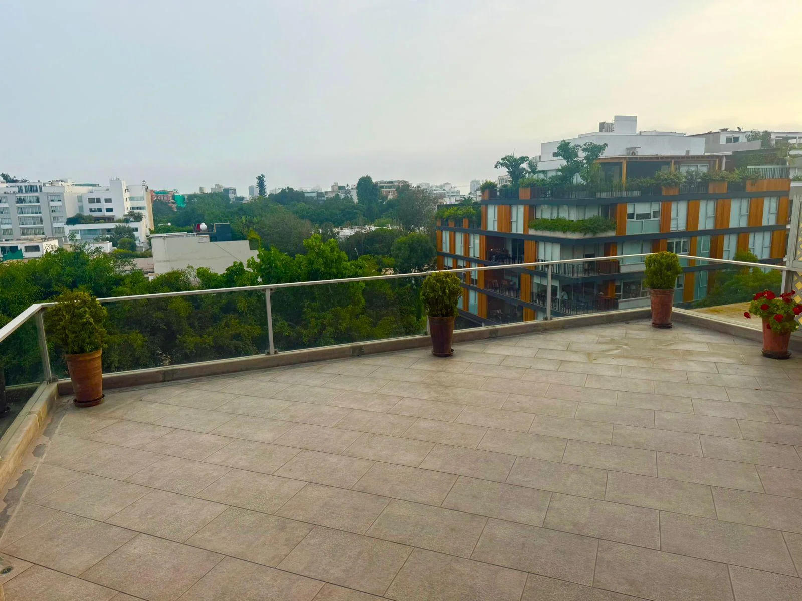 El penthouse ofrece una espectacular terraza con jardín, perfecta para disfrutar del aire libre, junto a una piscina climatizada con techo transparente que permite su uso durante todo el año. También dispone de un estudio o escritorio de muy buen tamaño, ideal para home office, y un baño de visitas. Como complemento, se incluye una terraza panorámica con una vista privilegiada al Golf y al Parque Roosevelt.