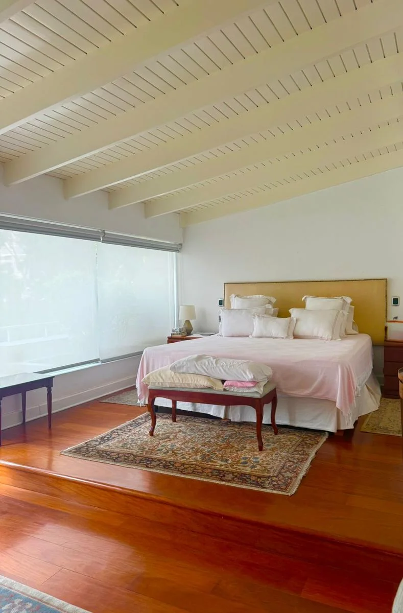 En la zona privada, se ubica un amplio family room con vista directa a la piscina, creando un ambiente acogedor. Cuenta con 4 dormitorios tipo suite, todos con baño incorporado y closets completos. El dormitorio principal es una exclusiva master suite que incluye terraza privada, un amplio walk-in closet y un elegante baño tipo spa con jacuzzi.