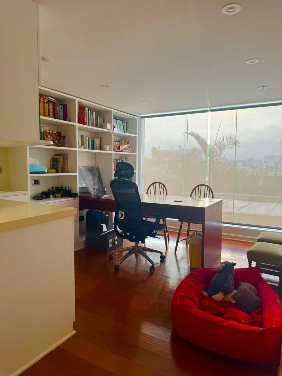 Esta propiedad se desarrolla en tres niveles y destaca por sus amplios ventanales que permiten una excelente iluminación natural en todos sus ambientes. Sus techos altos y pisos de madera aportan una sensación de calidez, elegancia y amplitud en cada espacio.