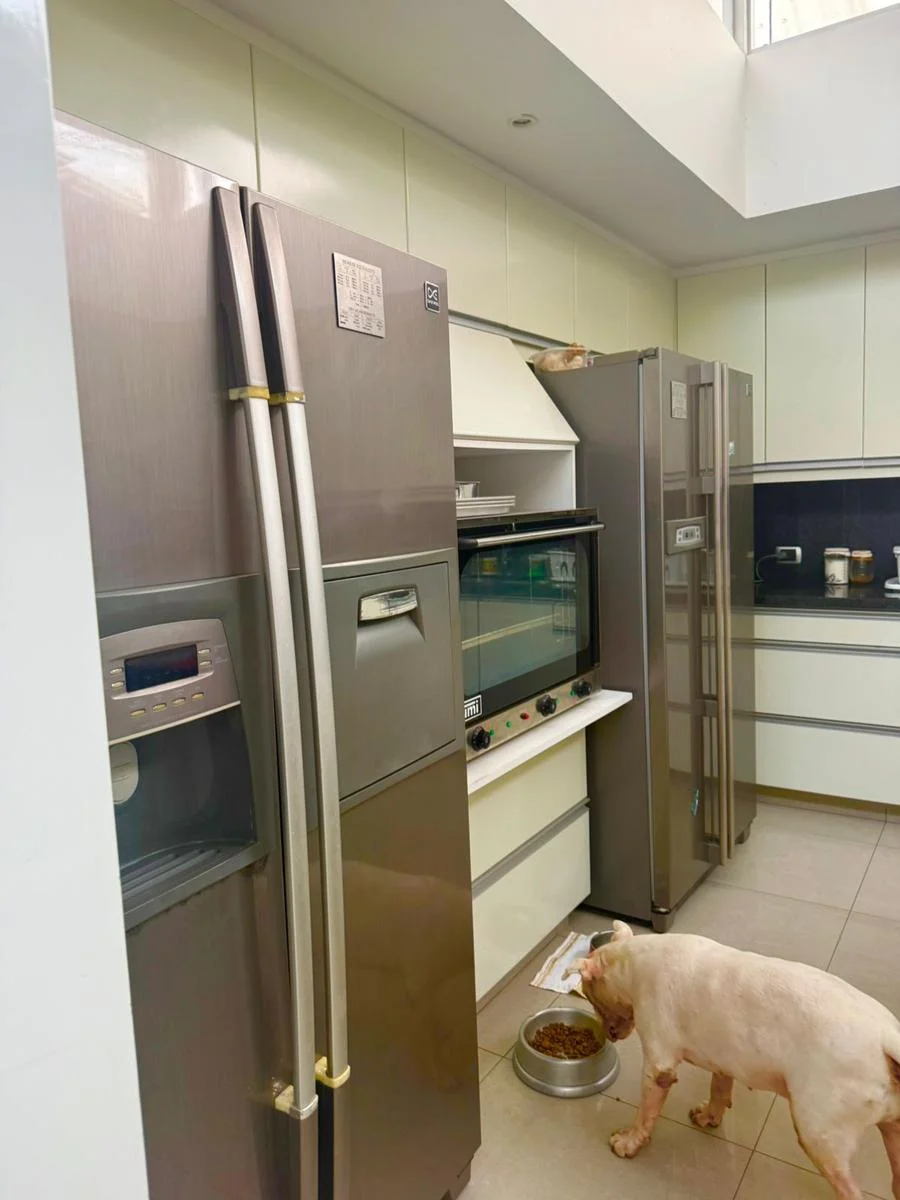 En el área social, se encuentra una impresionante doble sala con chimenea, ideal para reuniones o momentos de descanso, acompañada de un comedor de generosas dimensiones con una acogedora área de bar. La cocina gourmet es amplia y funcional, equipada con muebles altos y bajos, e incluye un cómodo comedor de diario. Además, cuenta con lavandería independiente, dos dormitorios de servicio y un baño de servicio.