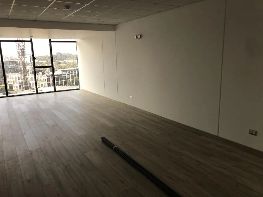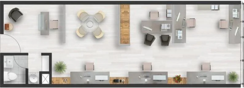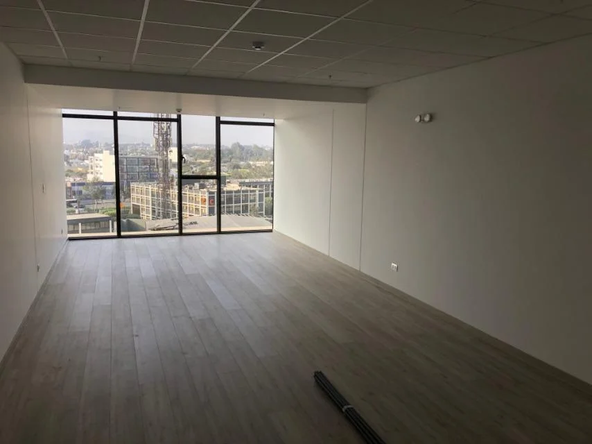 Oficina de estreno, Implementada, piso de laminado, cielo raso con luminarias, vista exterior, 1 ambiente,