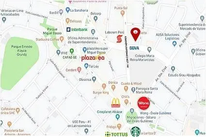 Edificio de nivel corporativo en la zona de San Isidro. Está ubicado en plena avenida Los Conquistadores, cerca de restaurantes, grandes agencias de bancos. A un paso del Ovalo Gutiérrez, zona de comercios como supermercados, cines, restaurantes de comida, etc. Su acceso es fluido