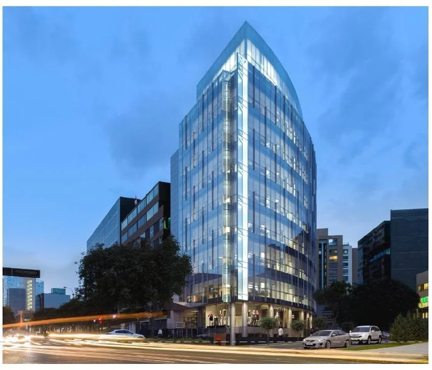 El edificio cuenta con 10 pisos y un sótano con un local alquilado a un restaurante. Tenemos dos locales comerciales en el primer nivel y los siguientes nueve pisos cuentan con 4 oficinas en cada uno que van desde los 98 m2 hasta 172 m2, y plantas enteras de 563 m2.