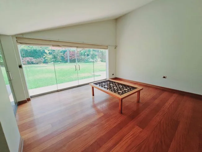 Primer piso: Hall de ingreso, jardín amplio con espacio para piscina, terraza, zona parrilla, baño completo. Amplia sala y comedor con vista y salida al jardín, terraza con techo sol y sombra, zona para BBQ, bar empotrado, baño de visitas. Cocina amplia, con 2 comedores de diario y alacena. Dormitorio principal rodeado de jardines, amplio con buena iluminación y con amplia sala de estar, closets para ropa blanca, baño con dos ambientes, uno con 2 ovalines, jacuzzi con vista a jardines, y otro ambiente con el baño completo y salida a un tendal. Cuarto y baño de servicio, deposito grande, Estacionamiento para 4 carros, patio, lavandería.