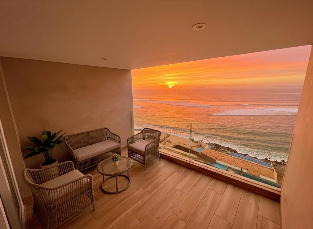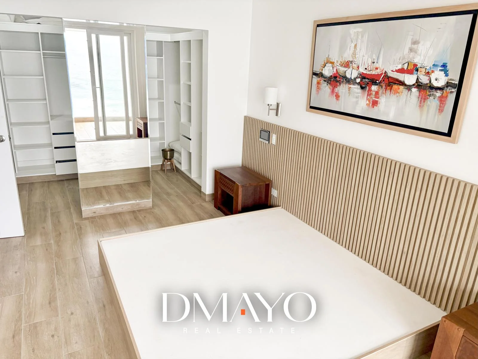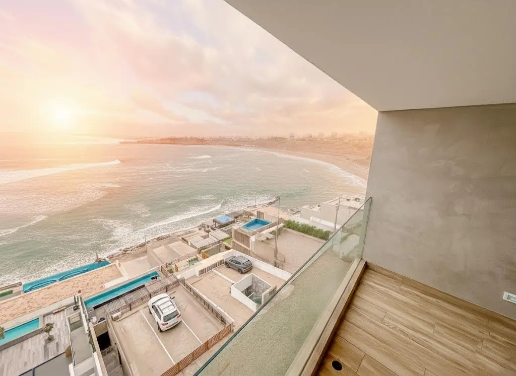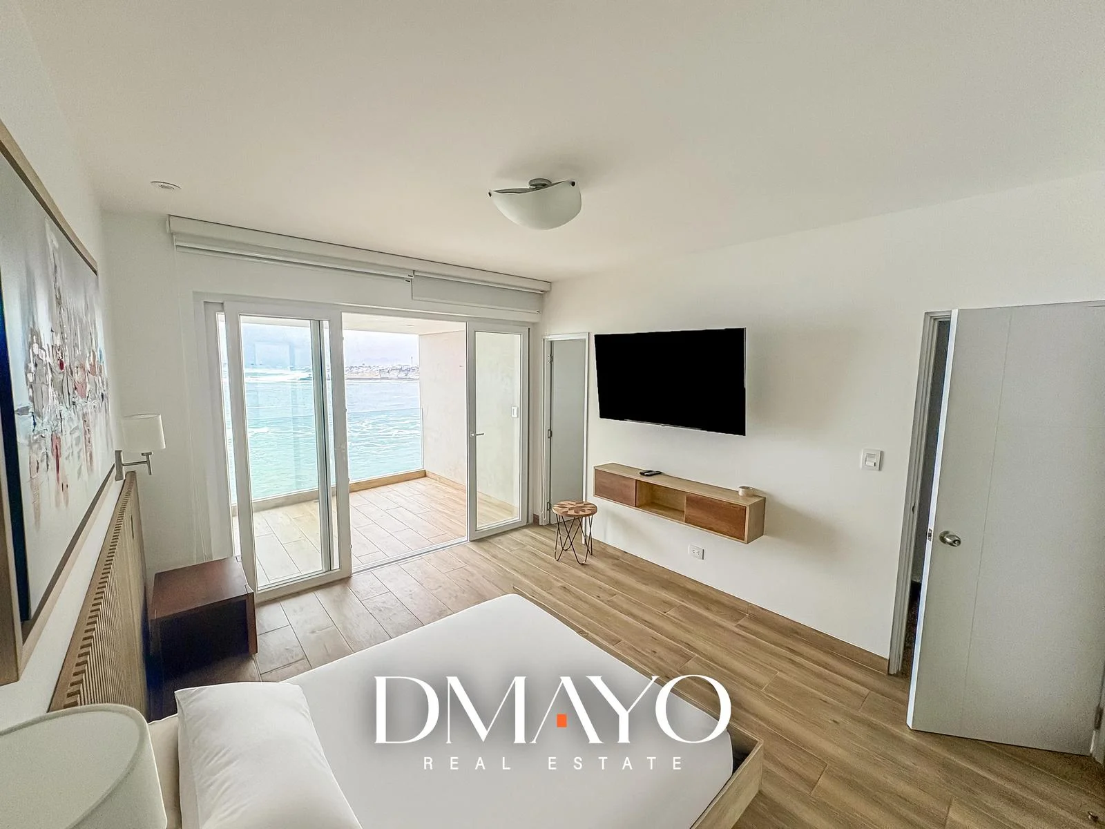 Dormitorio principal con terraza y vista al mar, walking closet amplio y baño completo incorporado