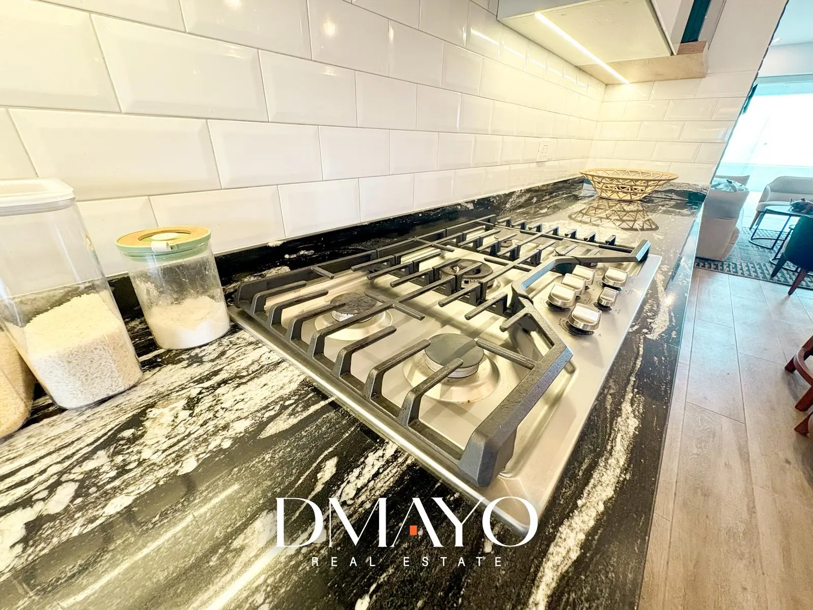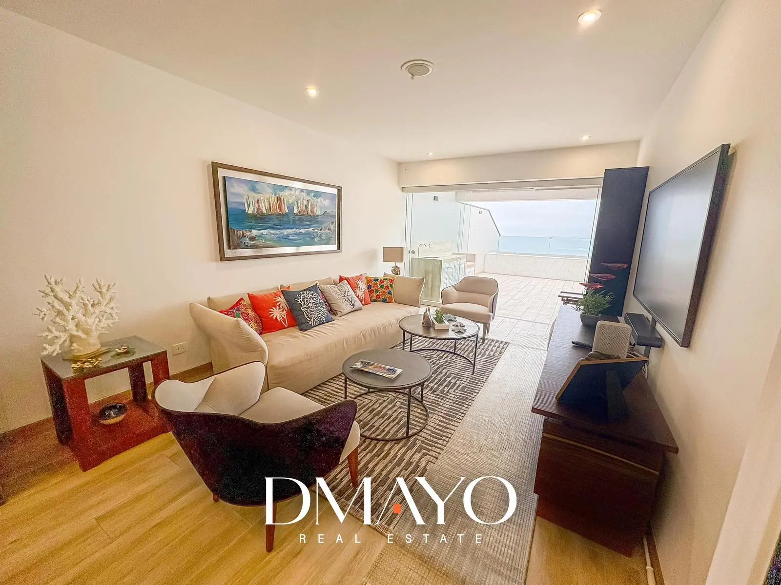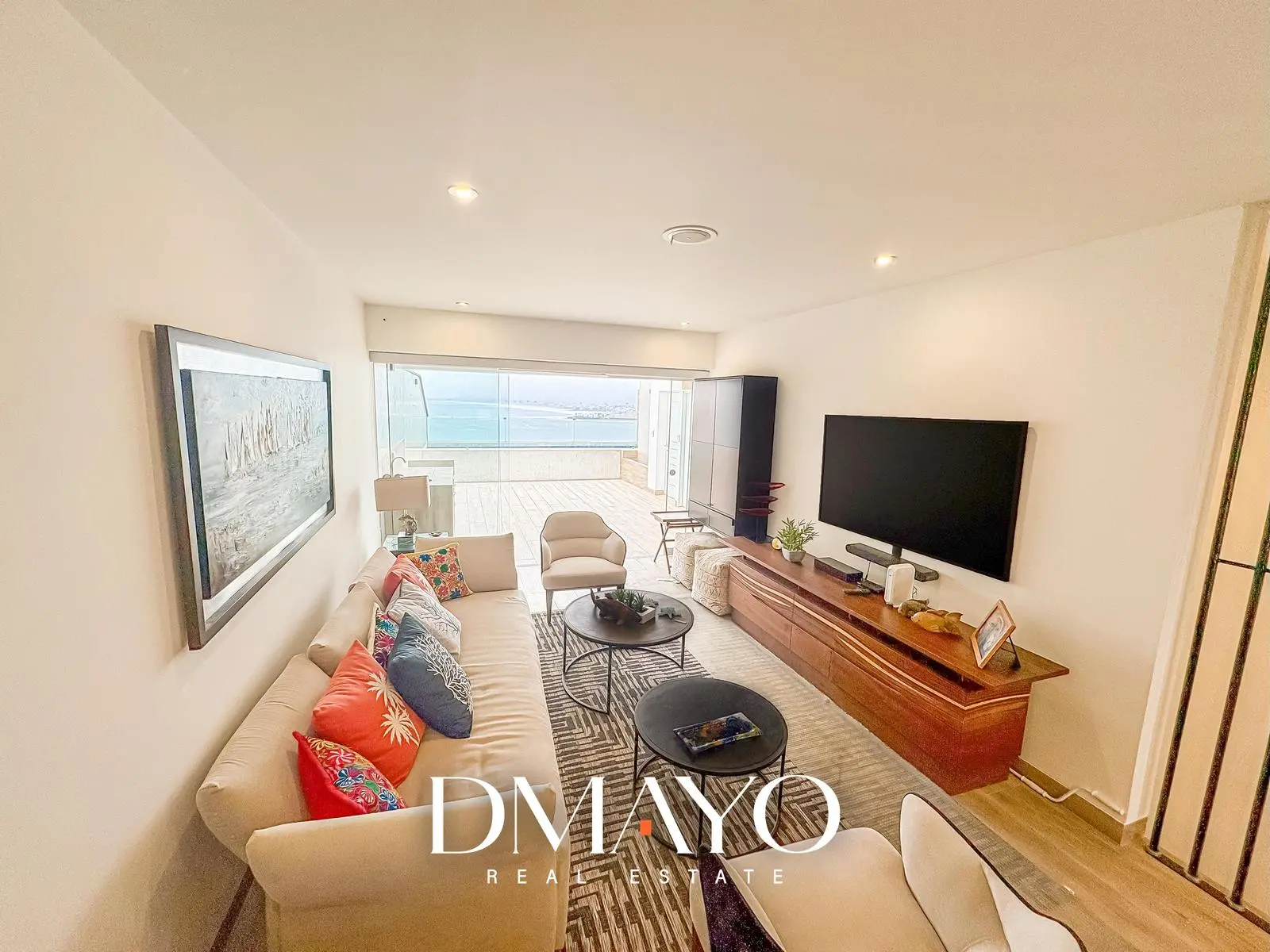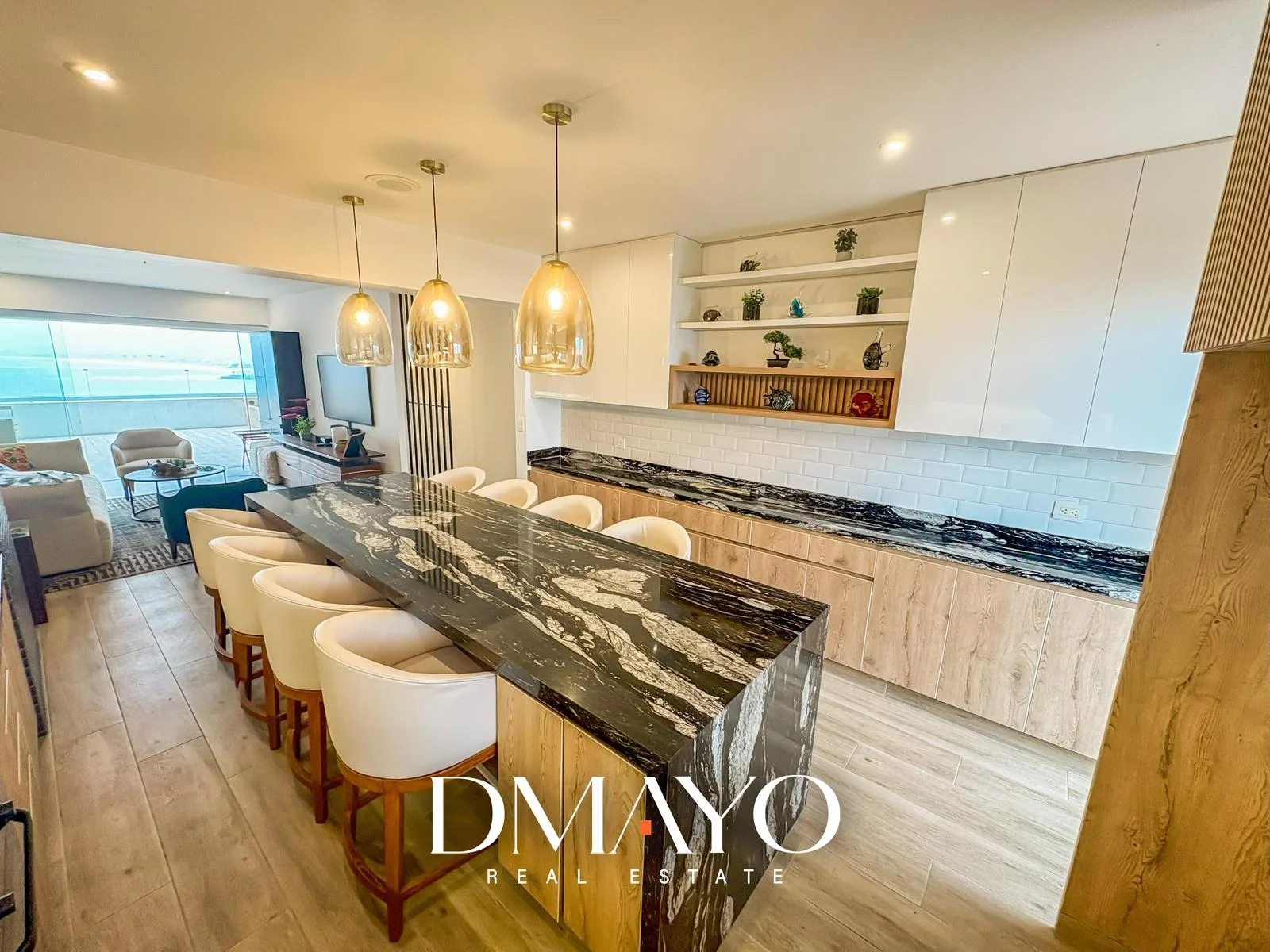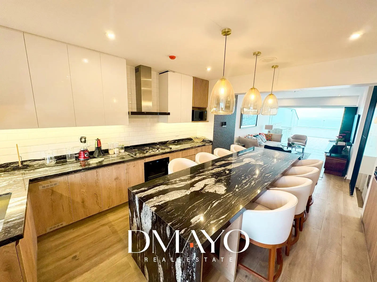 Living que colinda con cocina americana