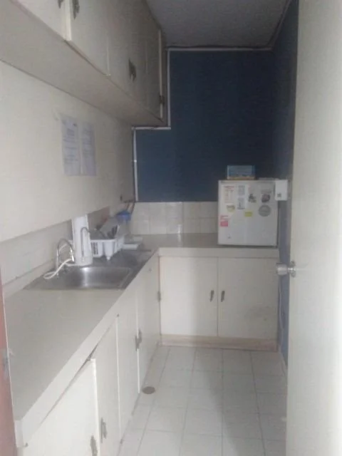 3 ambientes, una oficina independiente, 1 ambiente grande, cocina, 1 baño completo, 1 cochera techada.
