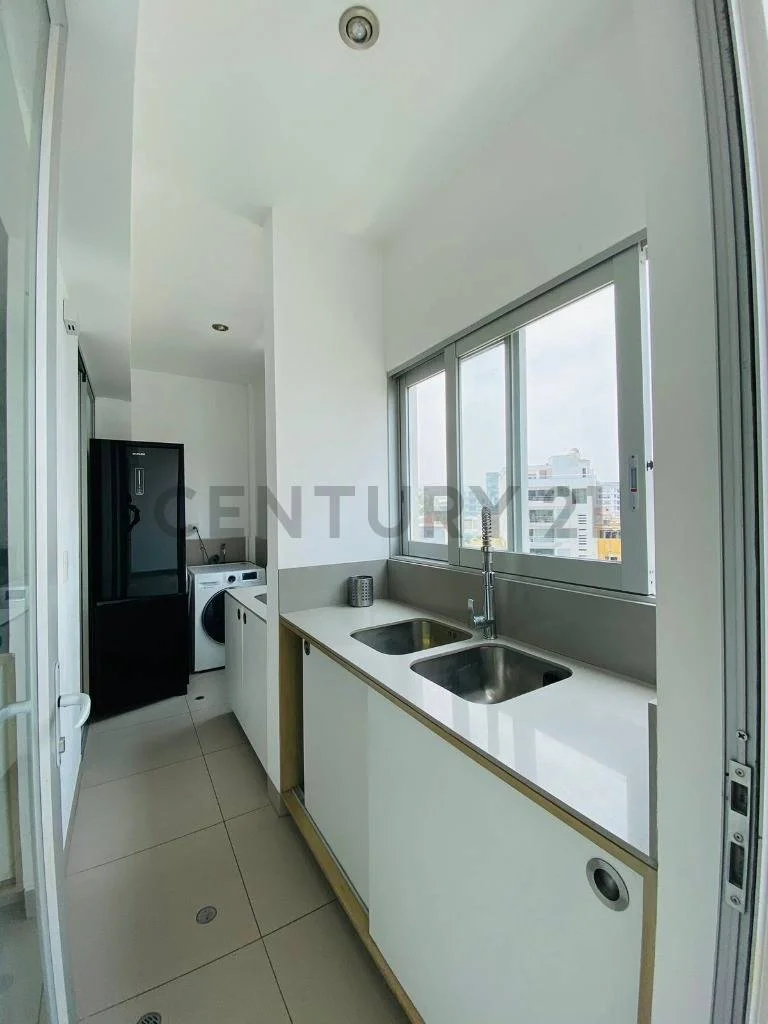 Cocina abierta con lavandería.